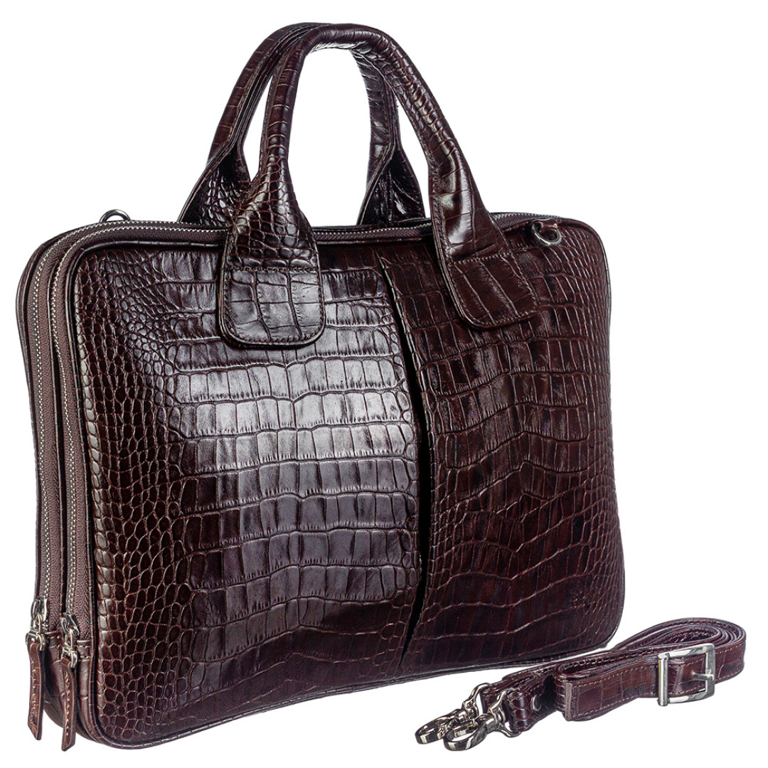 Мужской кожаный портфель коричневый под кроко BOND 1320-355 — обширный ассортимент товаров