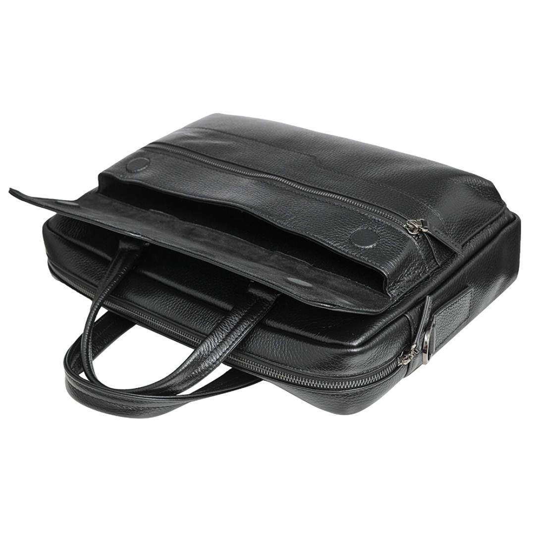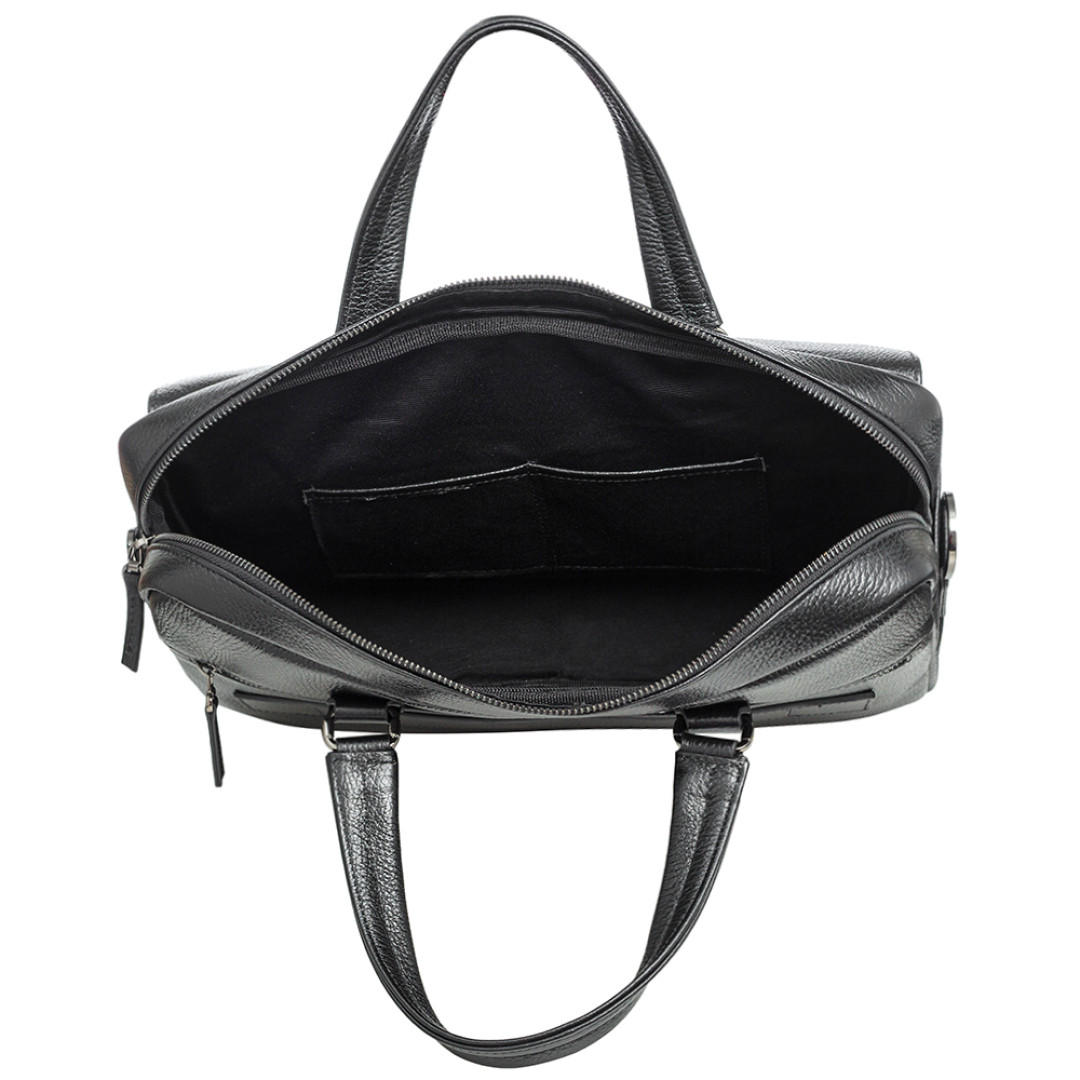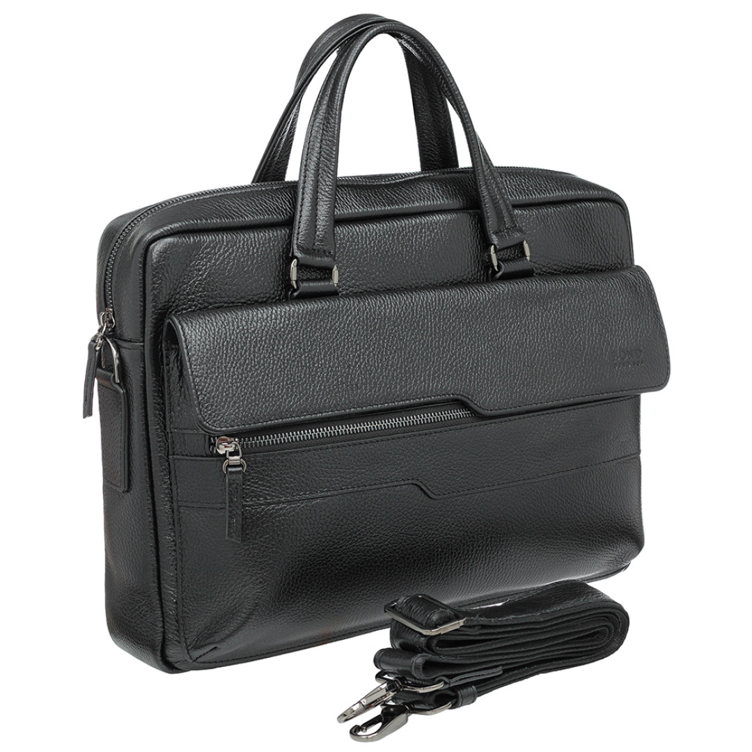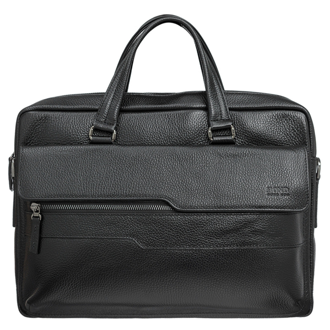 Мужской портфель Bond черного цвета выполнен из натуральной кожи.