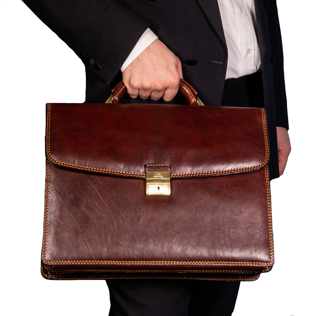 Мужской кожаный коричневый портфель TONY PEROTTI (Италия) Italico 8087 moro