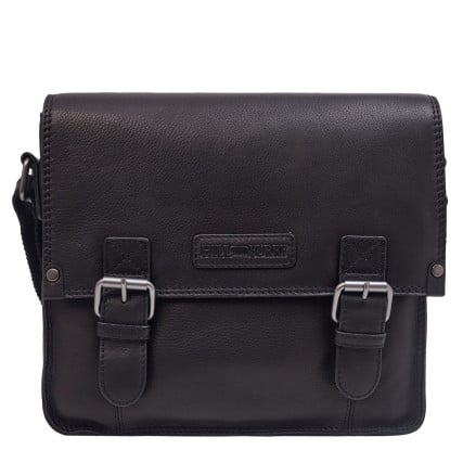 Мужская сумка-мессенджер Hill Burry выполнена из натуральной кожи в черном цвете.