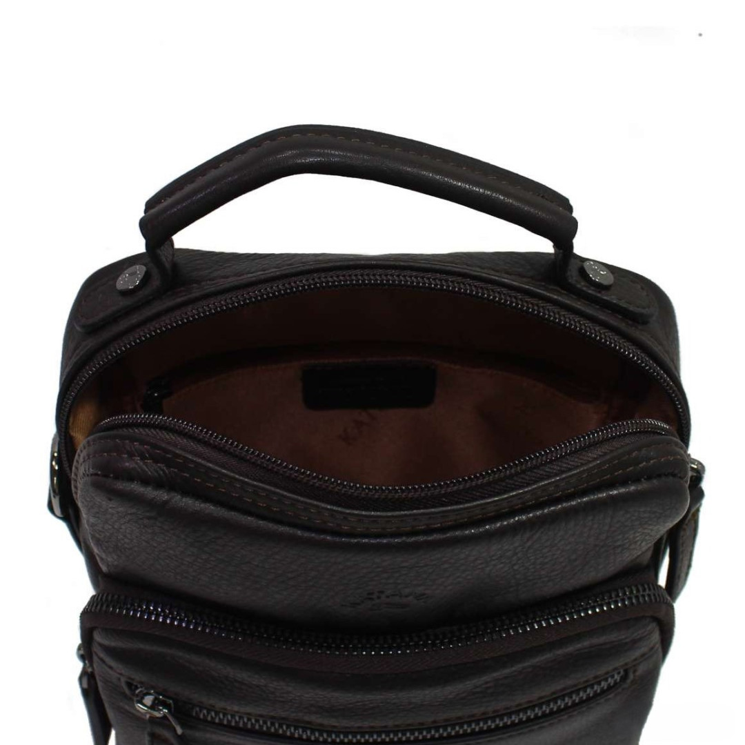 Выполненная из натуральной кожи премиум-качества и выдержанная в компактном размере (19 × 22 × 7 см), она идеально подходит для повседневного использования.