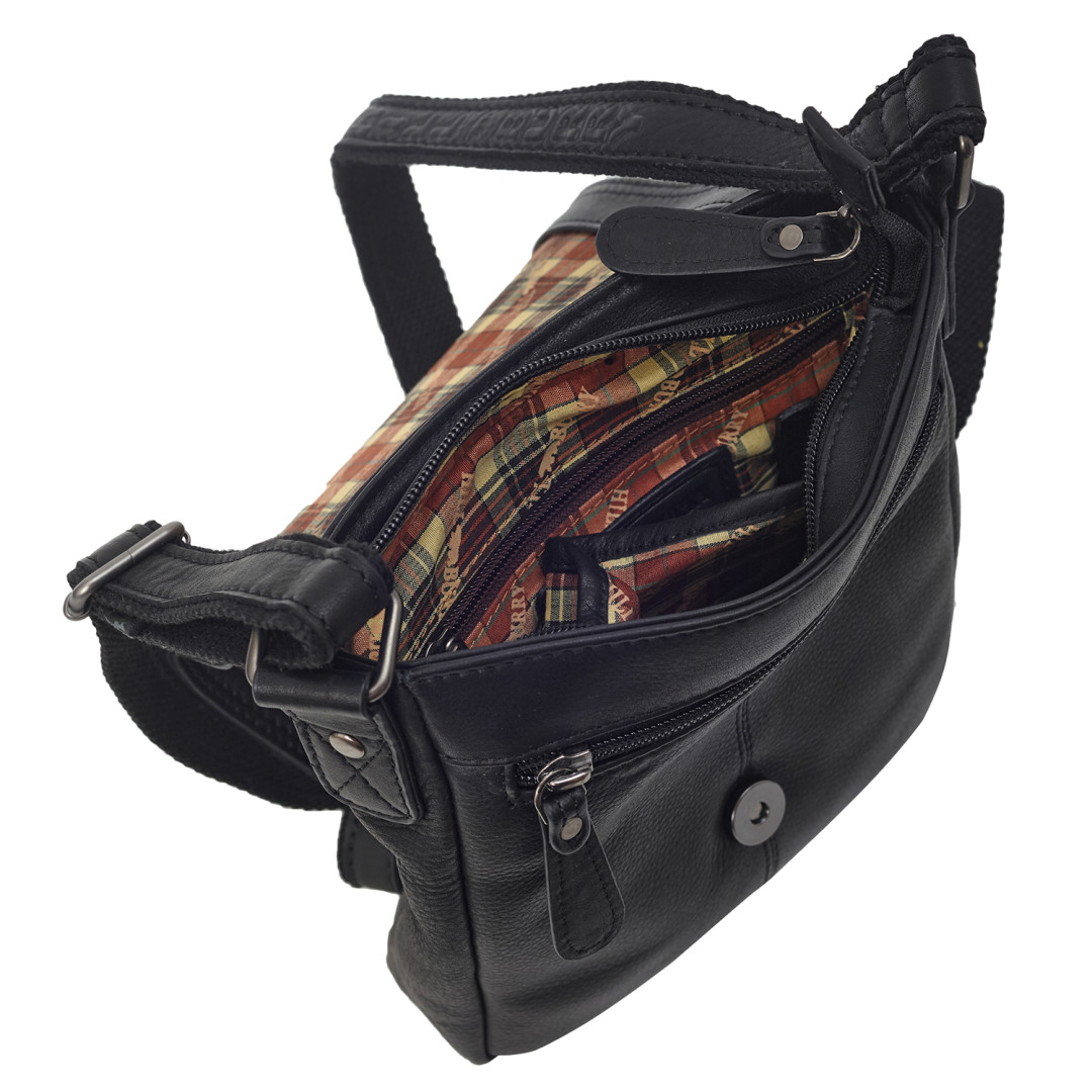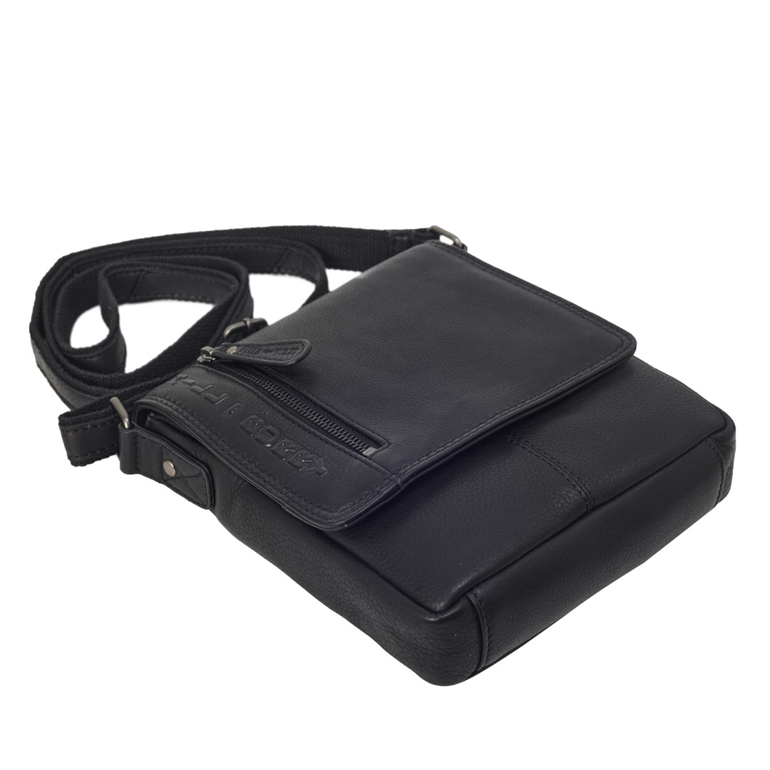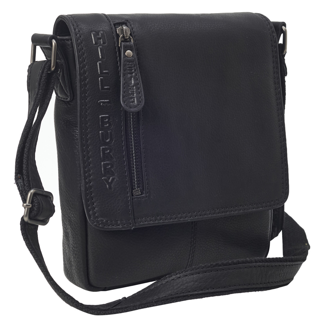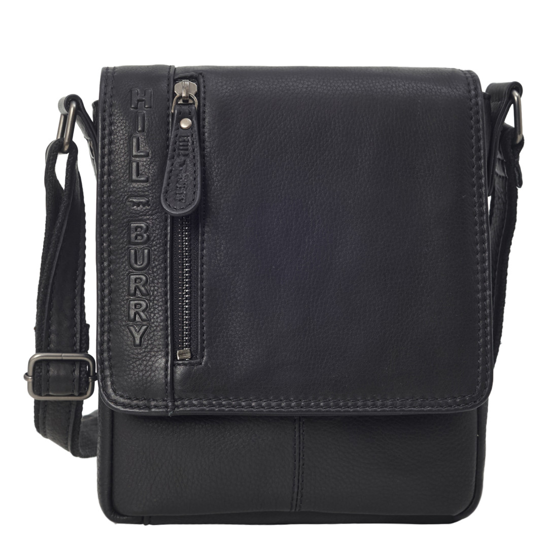 Мужская сумка-мессенджер Hill Burry выполнена из натуральной гладкой кожи в черном цвете.
