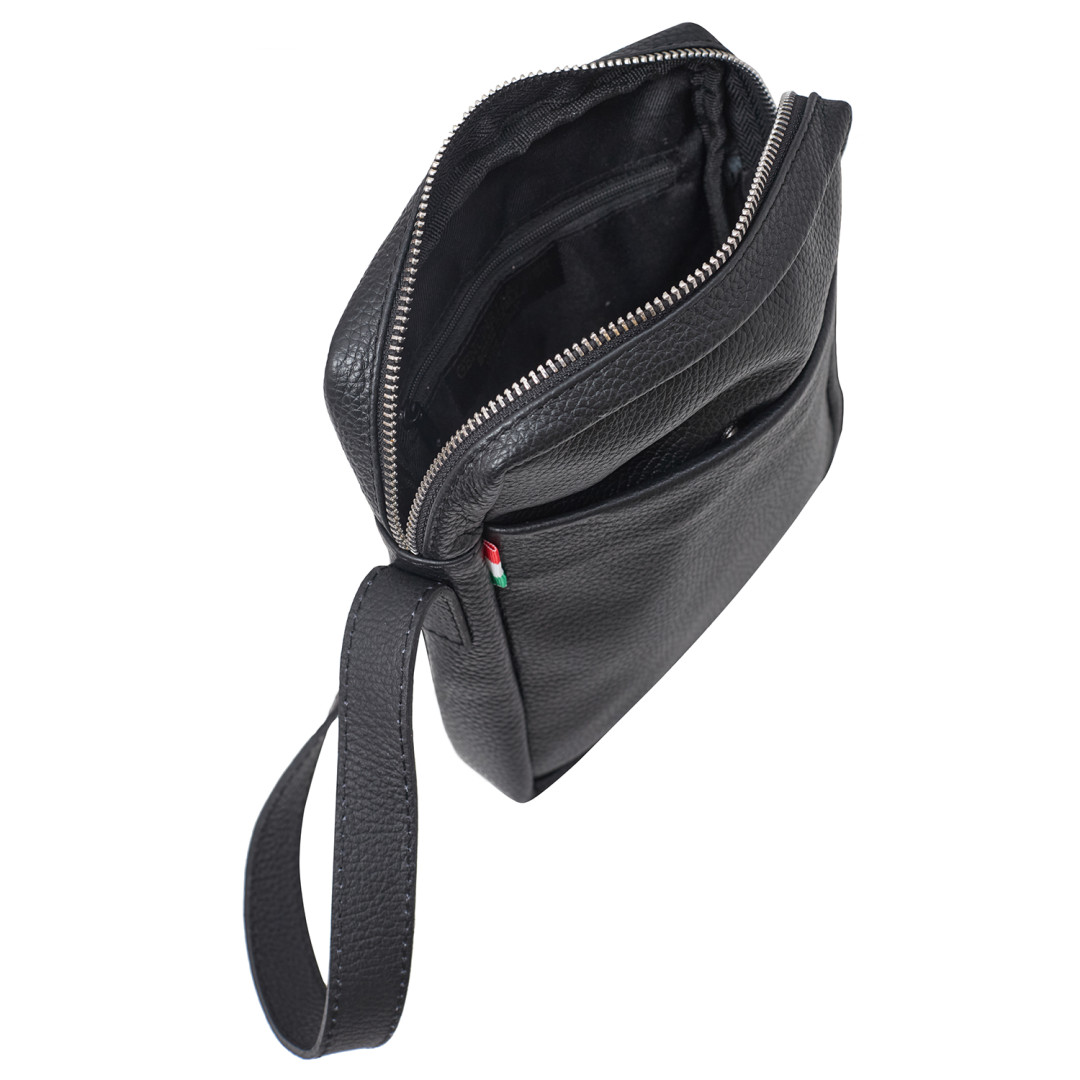 Мужская черная сумка-мессенджер Virginia Conti выполнена из натуральной кожи.