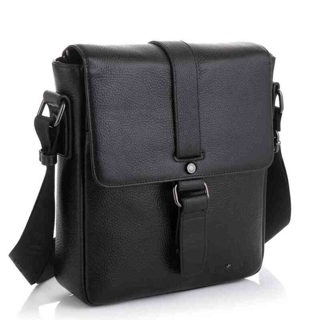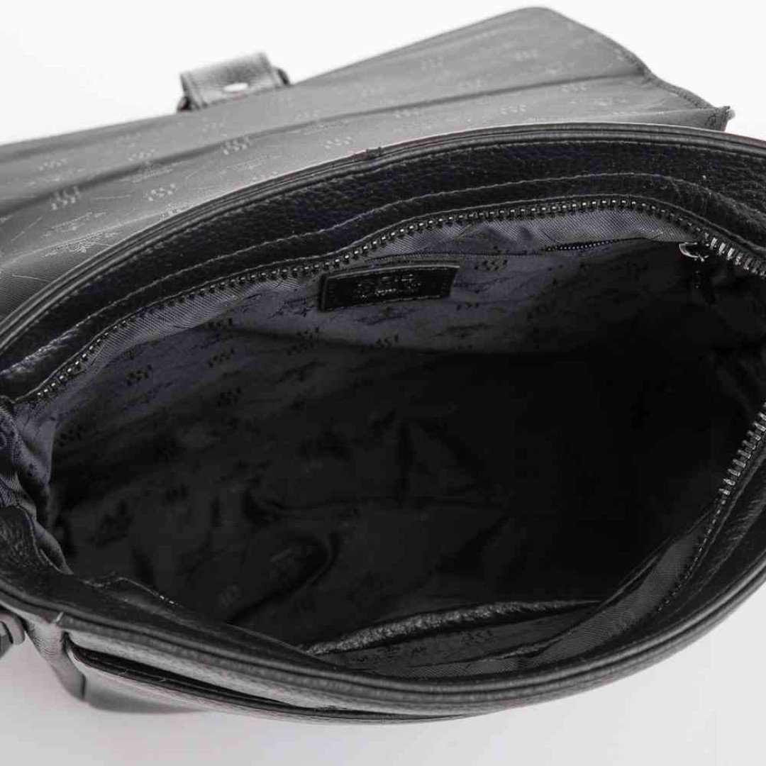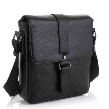 Особенности: имеет одно отделение на молнии, внутри органайзеры для мелкой канцелярии. С лицевой стороны под клапаном открытый отсек, с тыльной - небольшой карман на змейке. Подкладка - текстиль. Несъемный плечевой ремень регулируется по длине.
