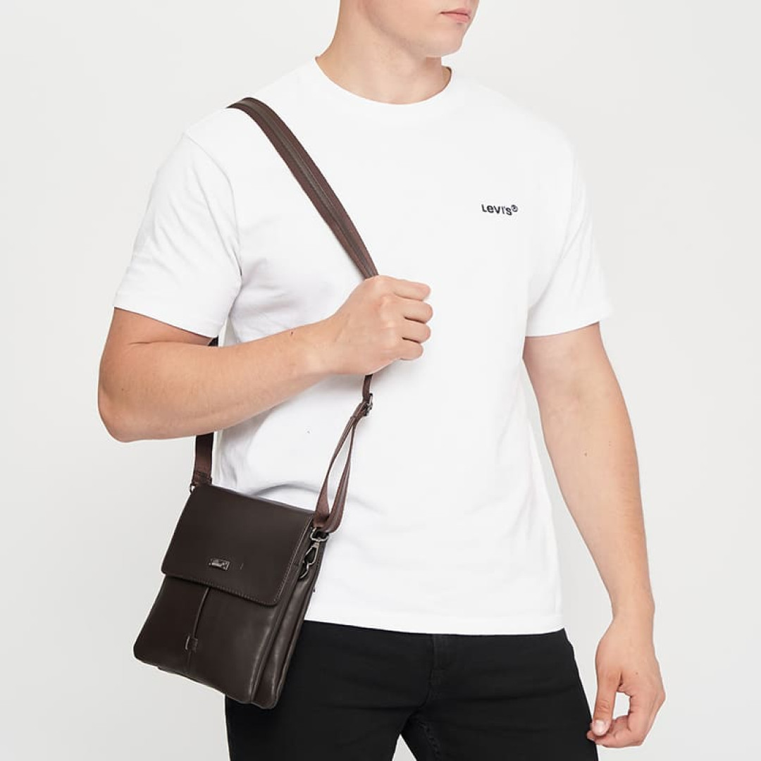 Особенности: закрывается на клапан с магнитом. Имеет 1 карман с лицевой стороны и 1 карман - с тыльной. Подкладка-текстиль. Имеет съемный плечевой ремень.