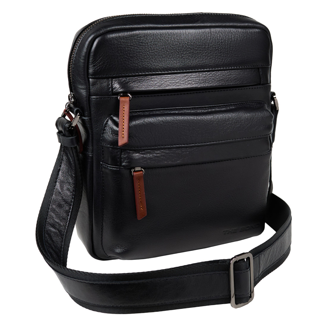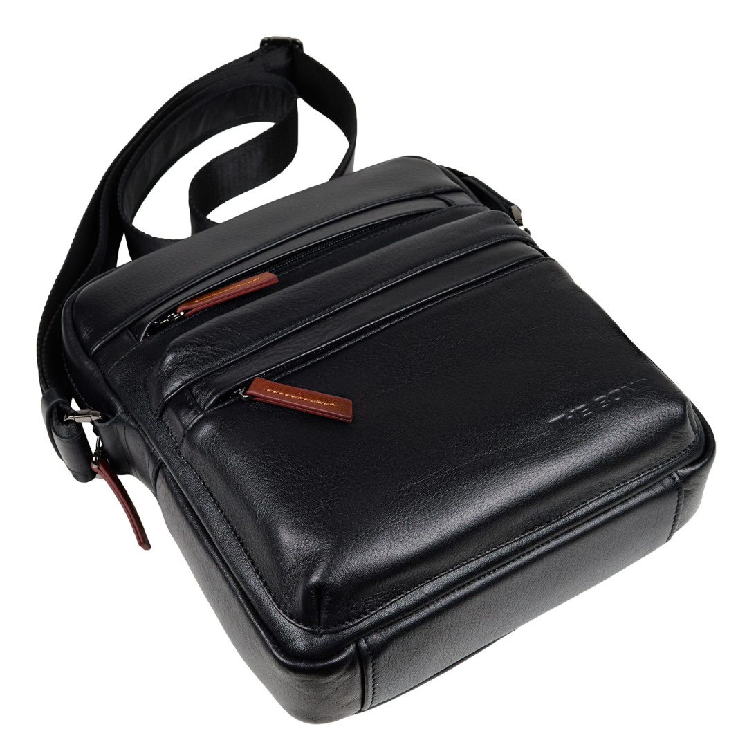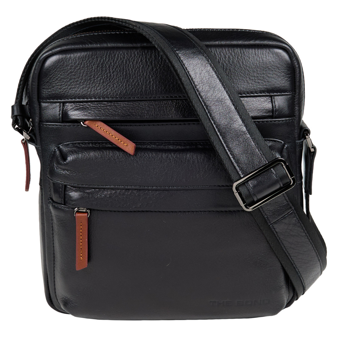 Мужская сумка BOND выполнена из натуральной гладкой кожи в черном цвете.