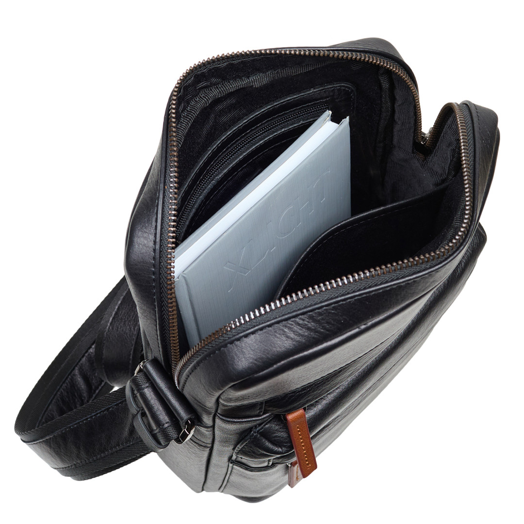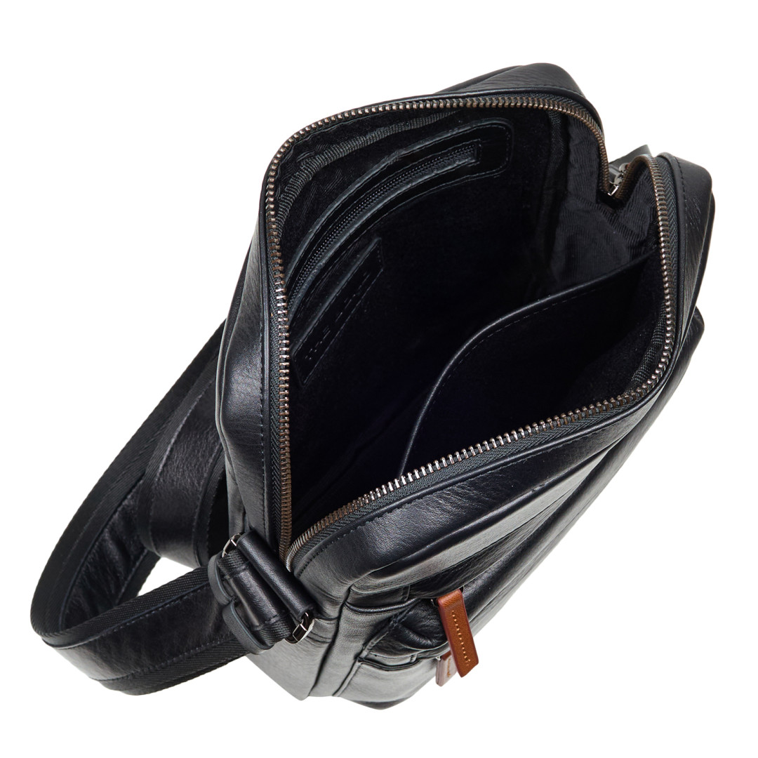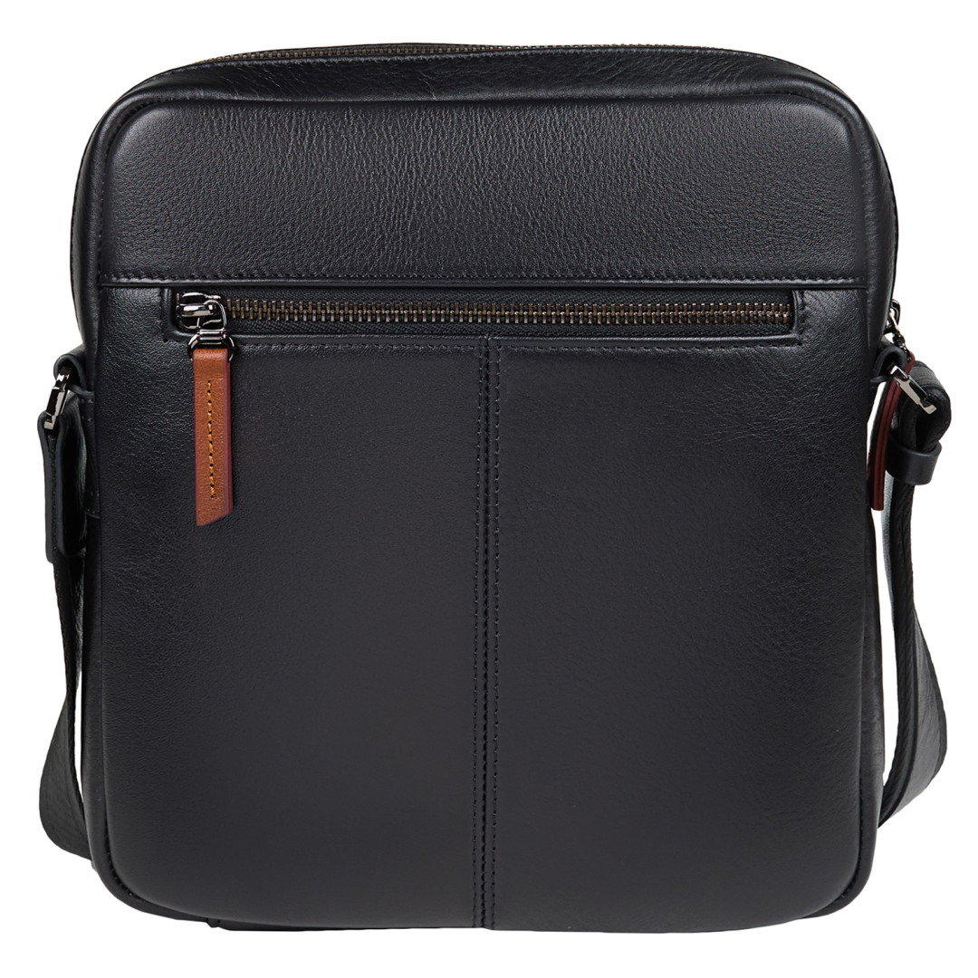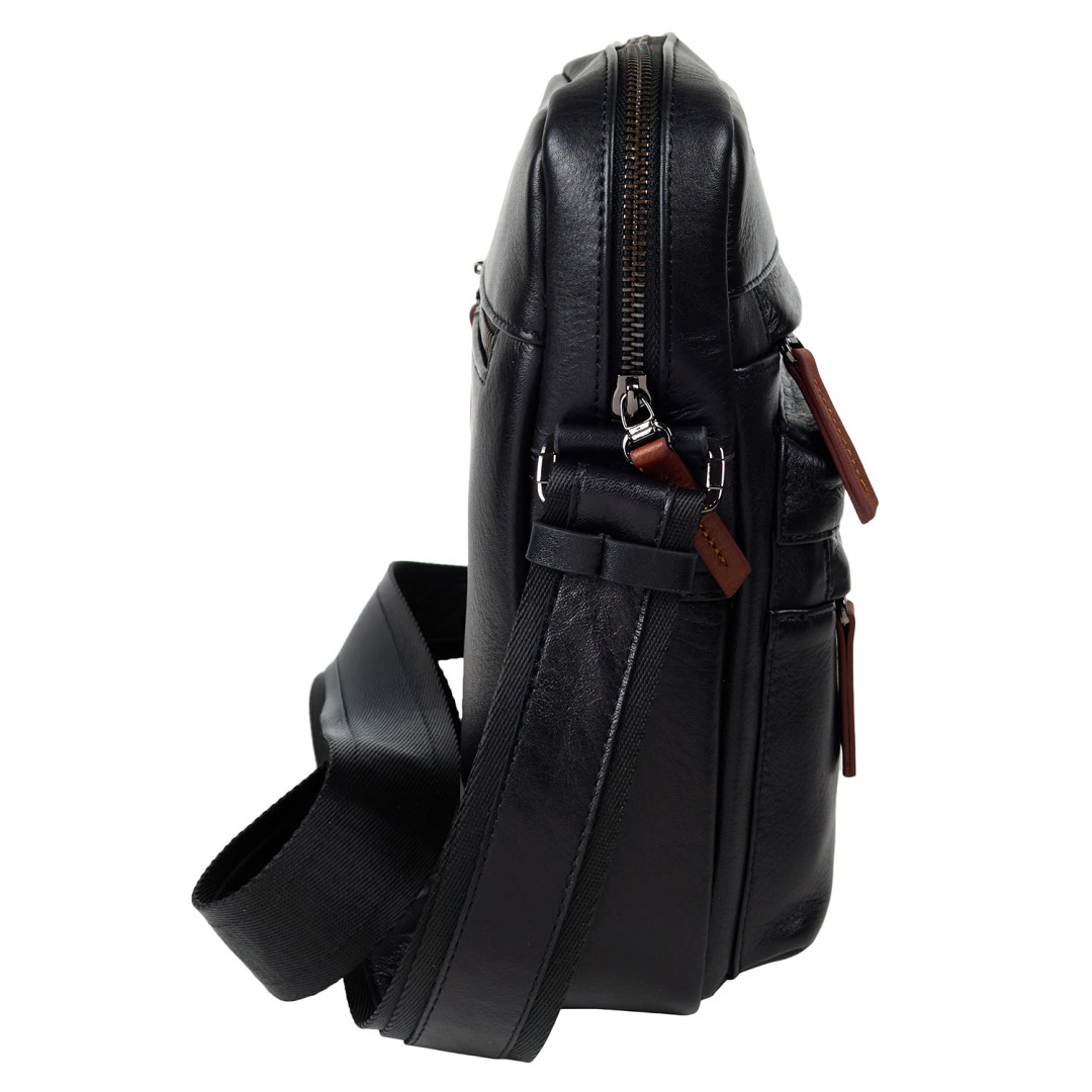 Мужская сумка BOND выполнена из натуральной гладкой кожи в черном цвете.