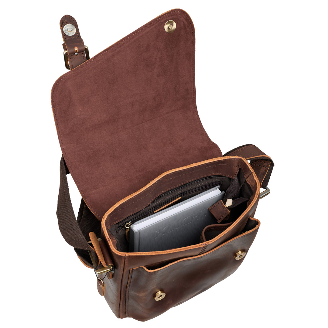 Длинный кожаный ремень позволяет носить сумку на плече или через плечо.