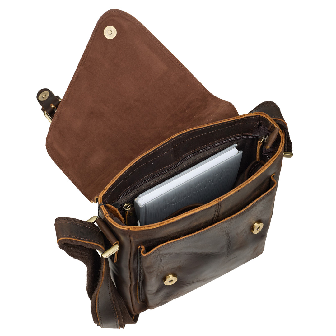 Длинный кожаный ремень позволяет носить сумку на плече или через плечо.