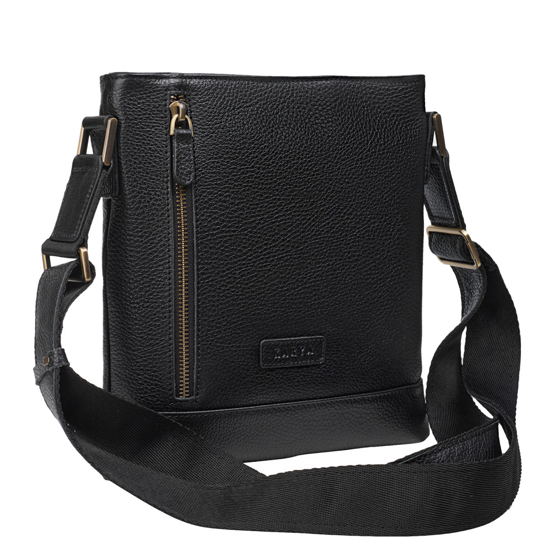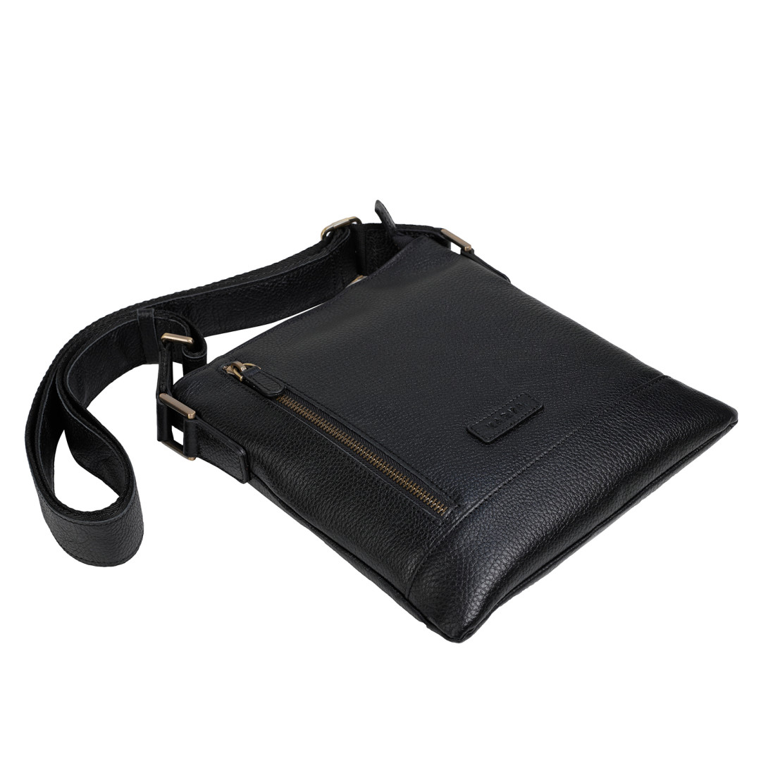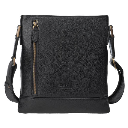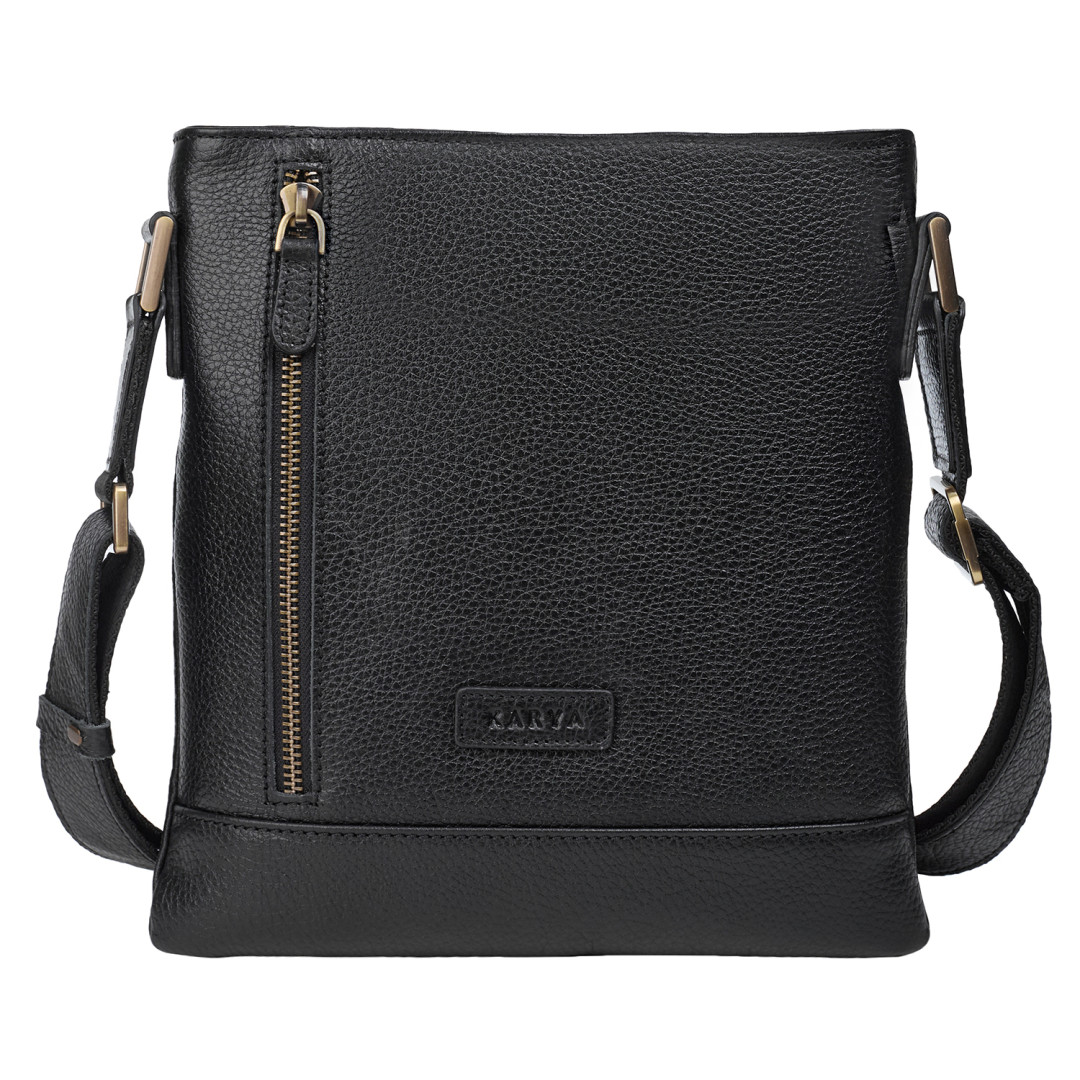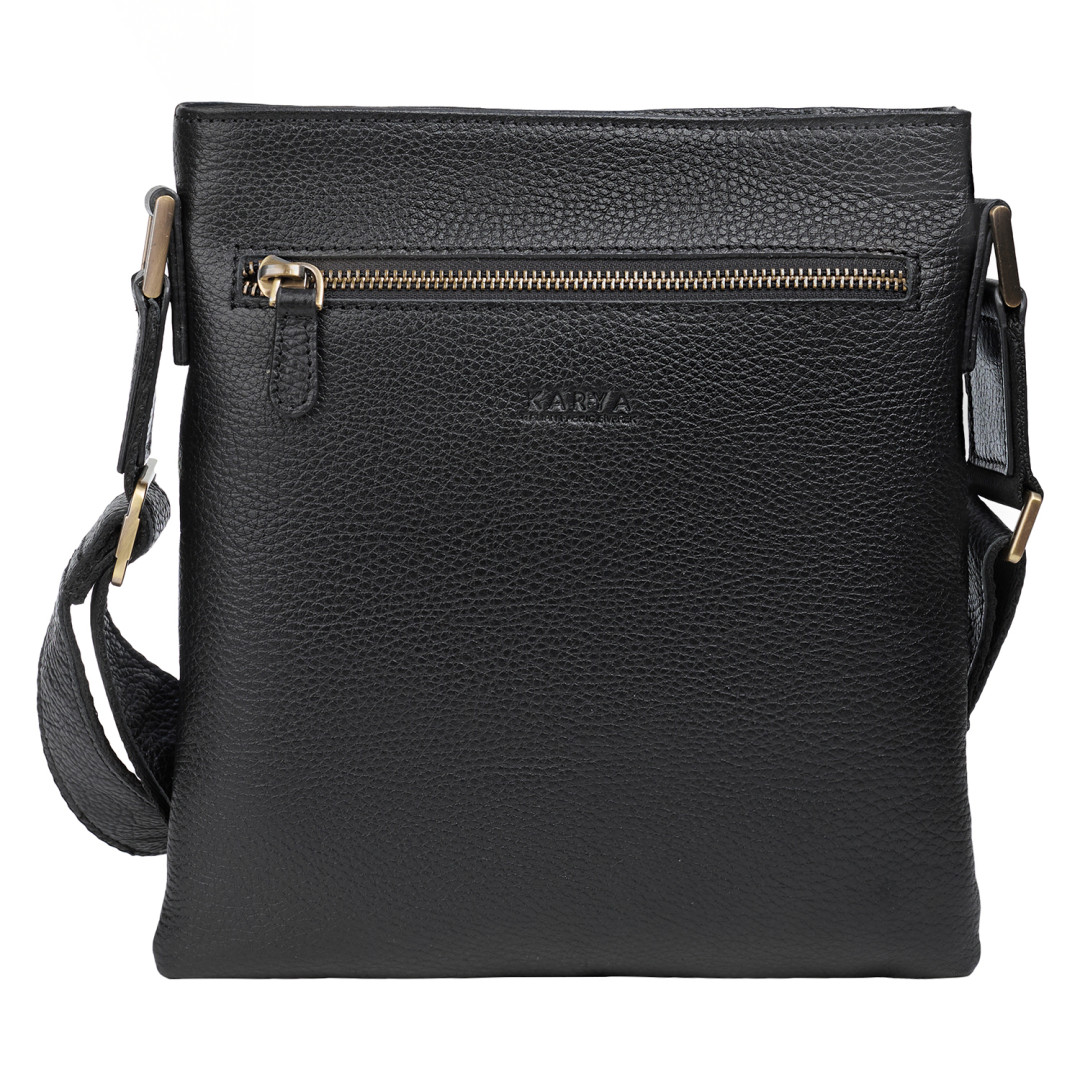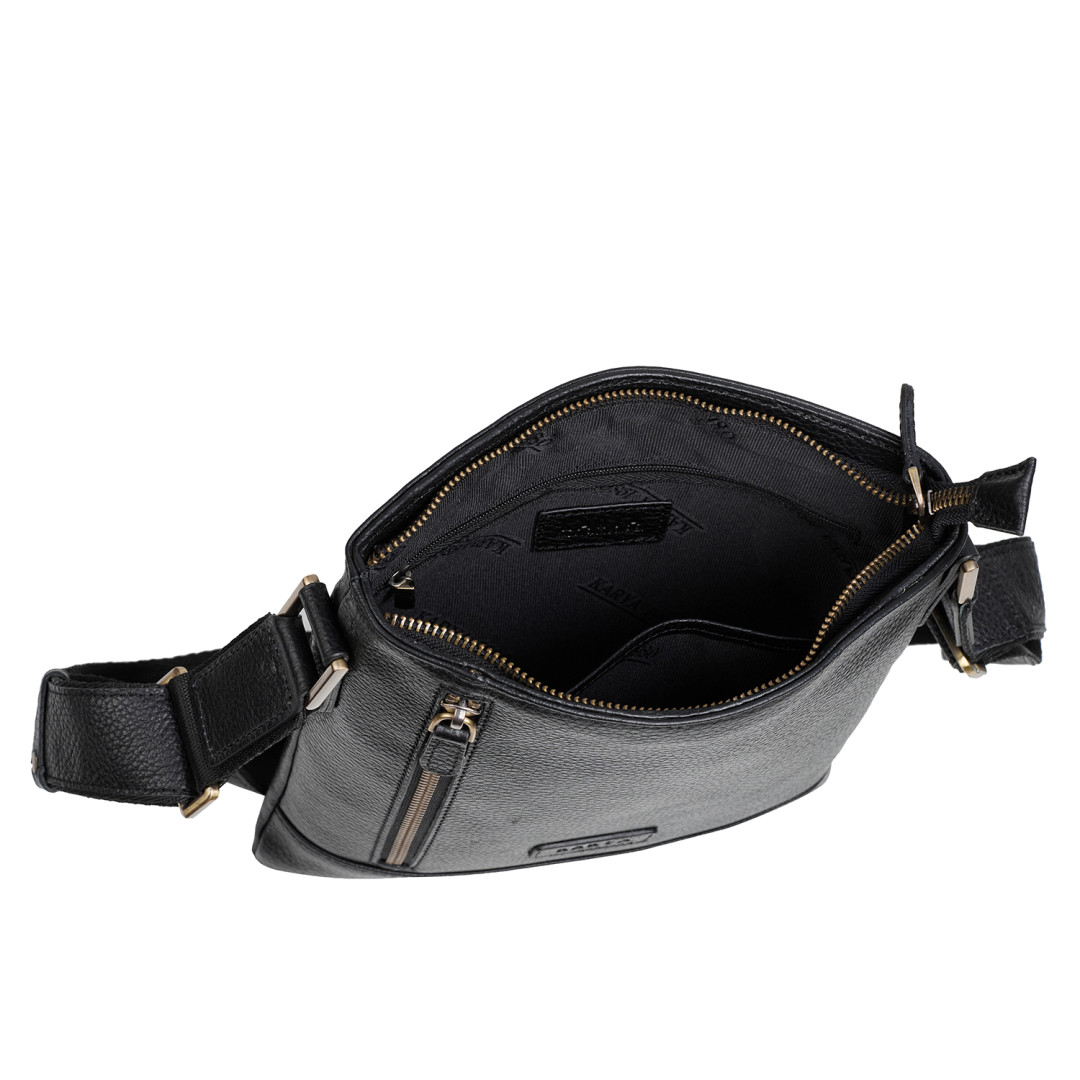 Мужская сумка через плечо Karya выполнена из натуральной кожи (флотар) в черном цвете.