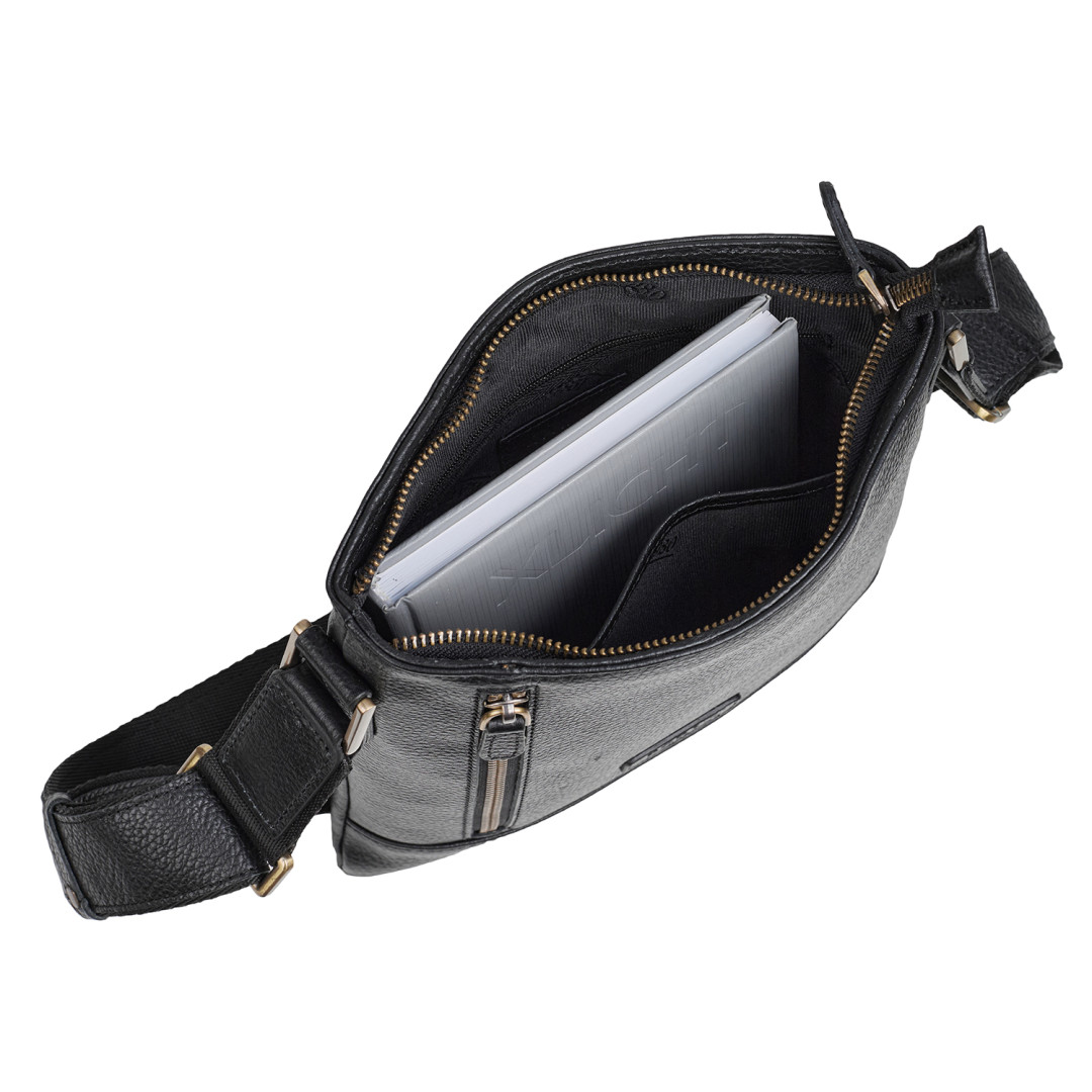 Регулируемый плечевой ремень с кожаной вставкой обеспечивает комфортное ношение через плечо или на плече.