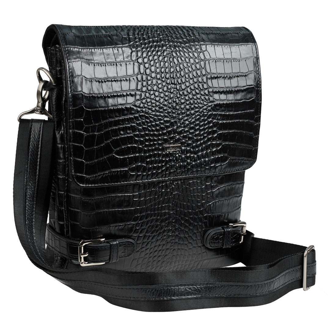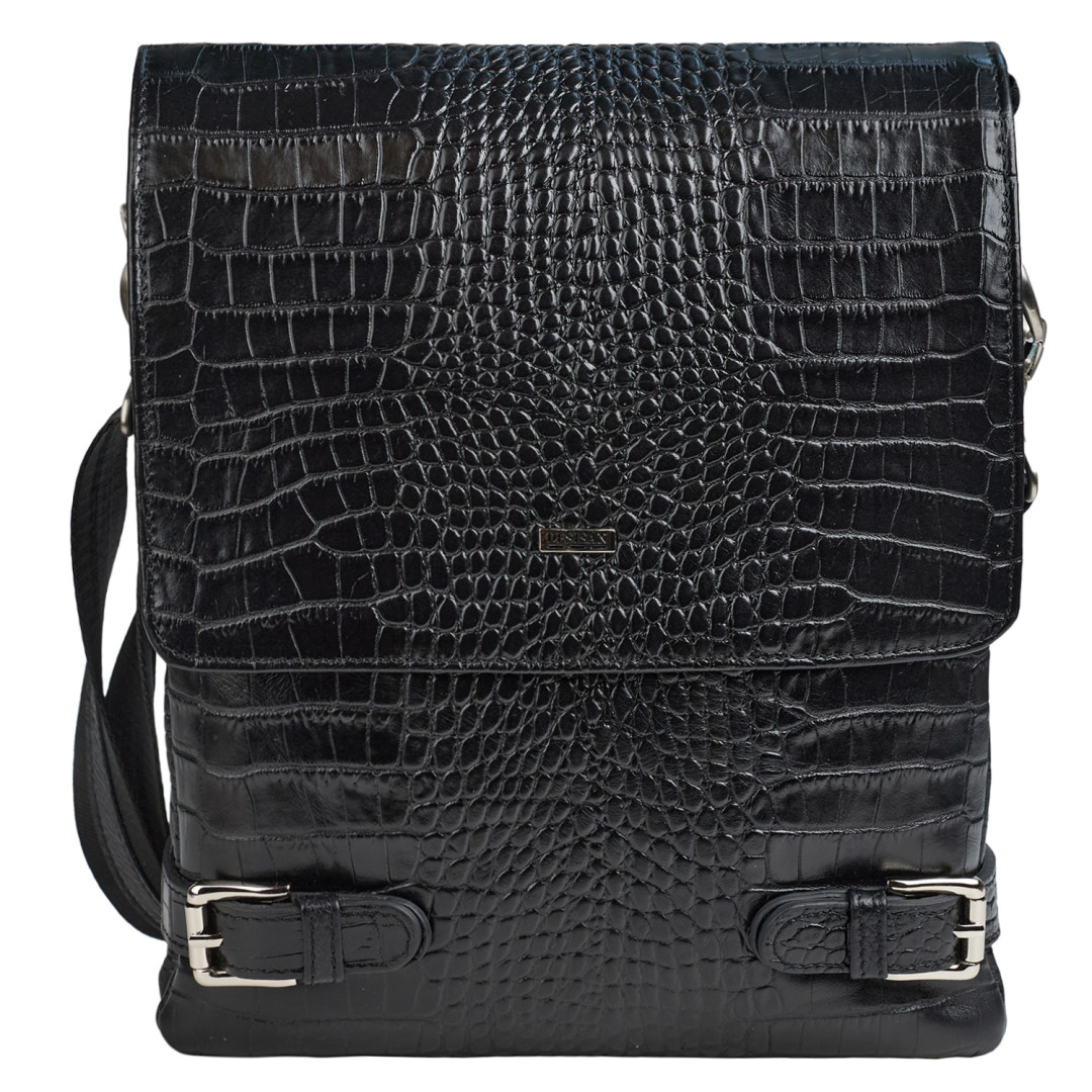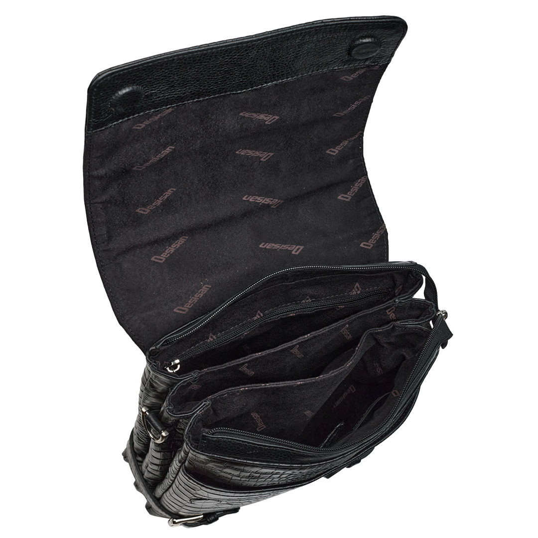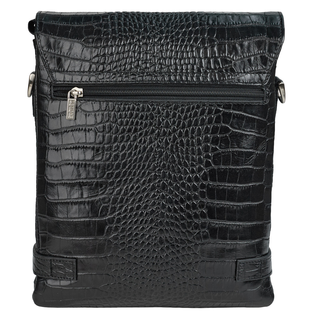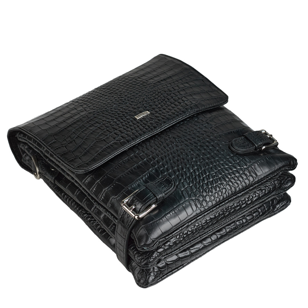 Мужская сумка через плечо DESISAN выполнена из натуральной кожи в черном цвете.