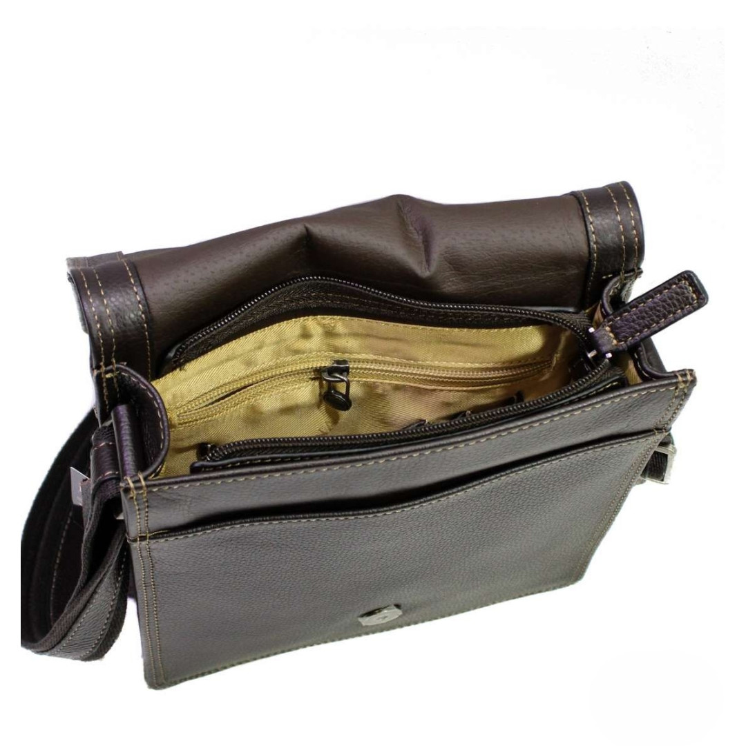 Внутри предусмотрено основное отделение с подкладкой и дополнительные карманы, включая карман на молнии, для аккуратного хранения документов и мелочей. Снаружи — карман под откидным клапаном, который закрывается кнопкой, для быстрого доступа к нужным предметам.