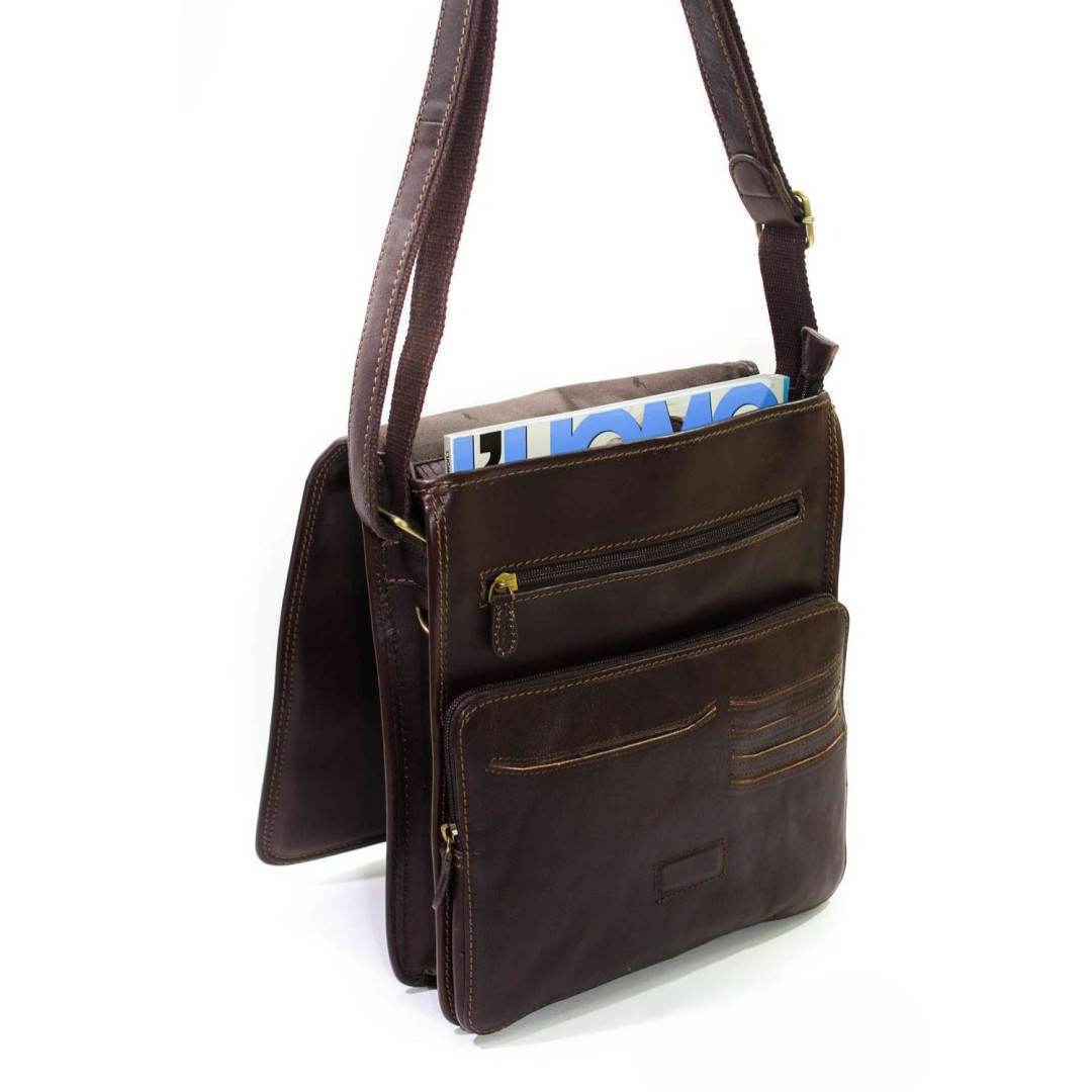 Мужская сумка Katana изготовлена из натуральной телячьей кожи и сочетает практичность с лаконичным классическим стилем.