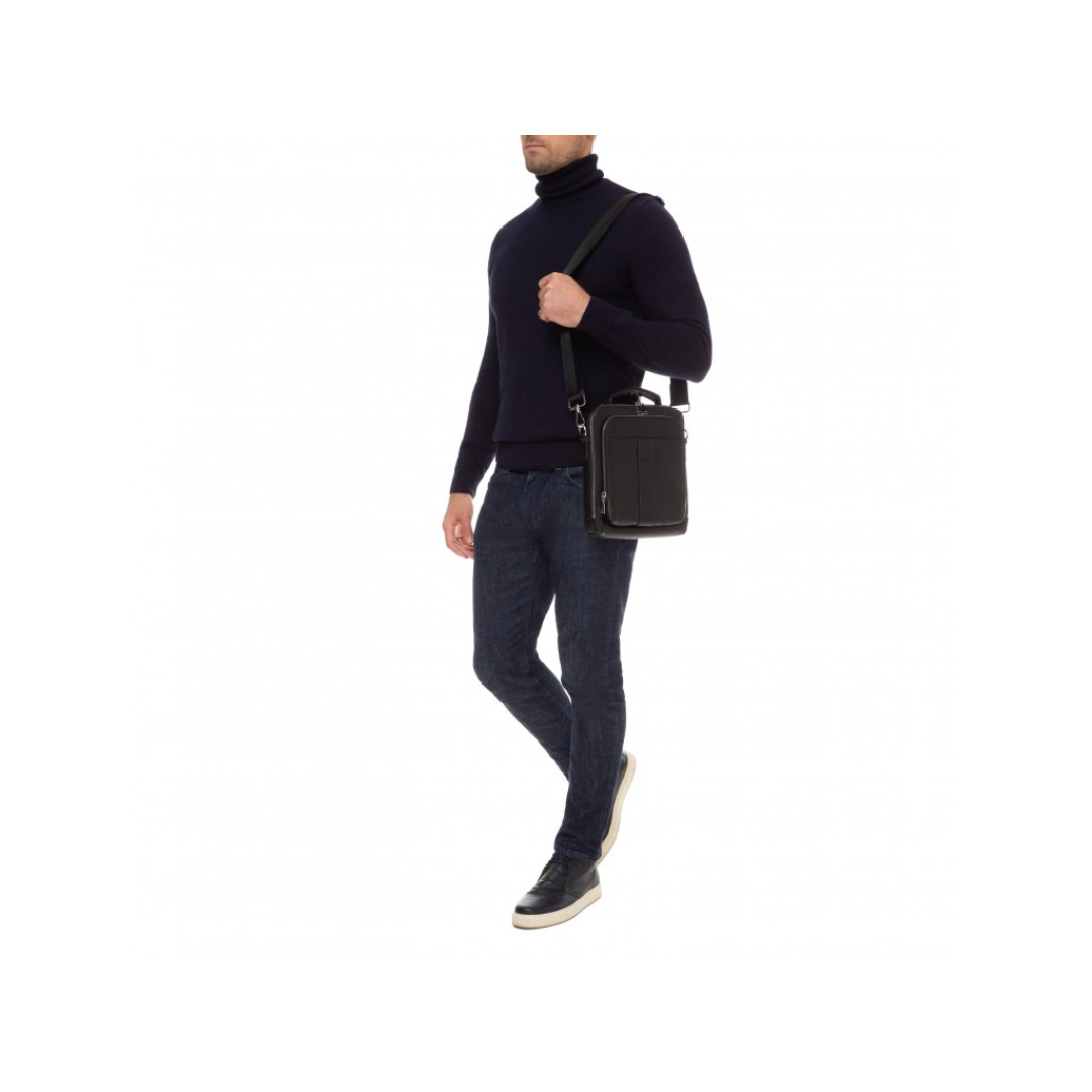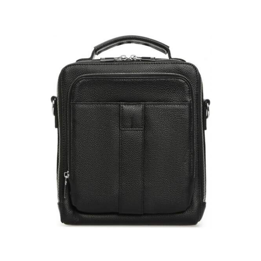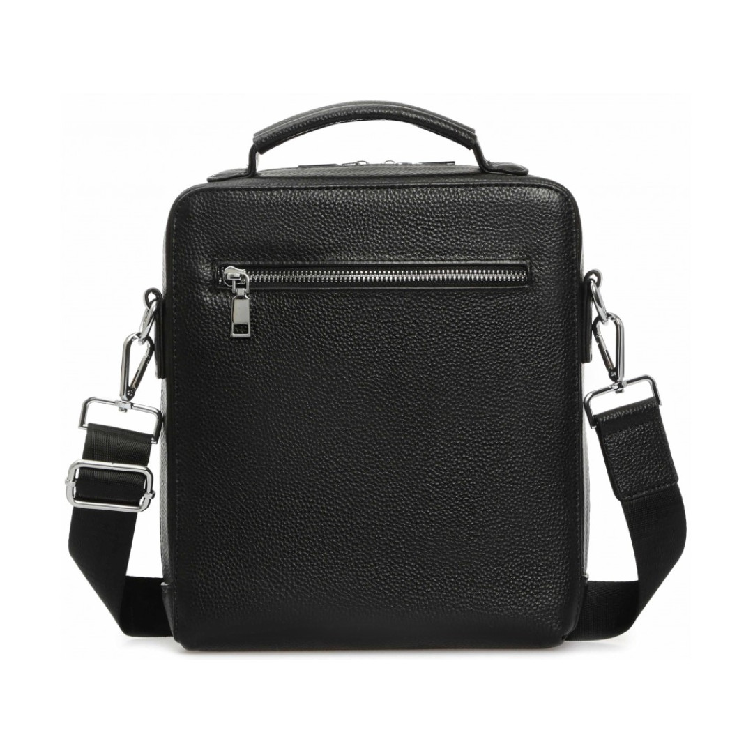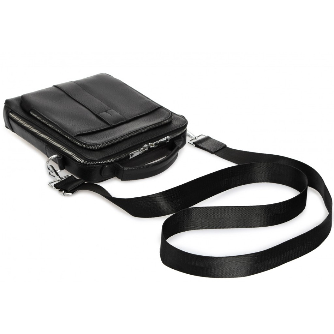 Особенности: одно основное отделение содержит карман горизонтального формата на молнии и органайзер открытого типа. С лицевой части расположен дополнительный отсек по всему периметру сумки. С тыльной стороны также расположен карман. Сверху изделия кожаная ручка для ношения аксессуара в руке. В комплекте идет наплечная шлейка из плотного тектиля, которая крепится к боковым петлям с помощью надежных карабинов.