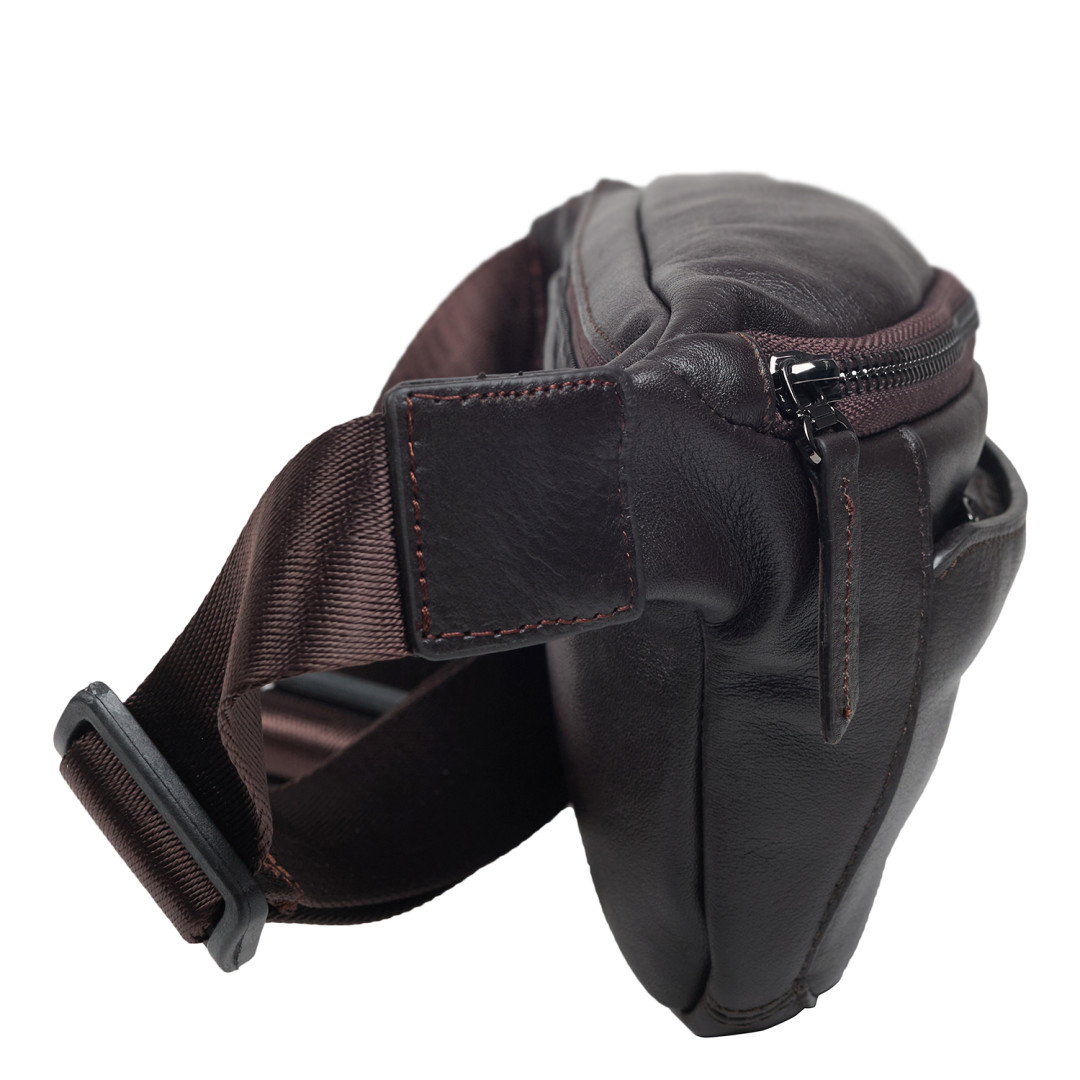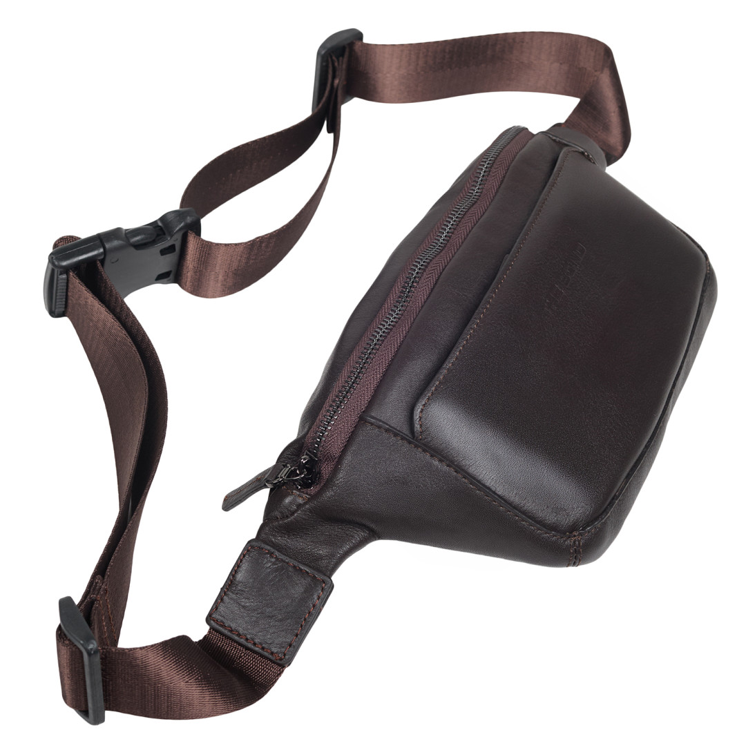 Мужская поясная сумка BOND выполнена из натуральной кожи в коричневом цвете.