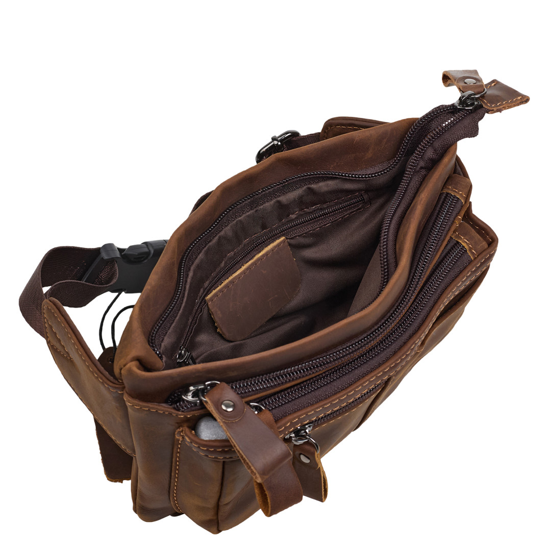 Мужская поясная сумка Buffalo Bags выполнена из натуральной винтажной кожи в коричневом цвете.