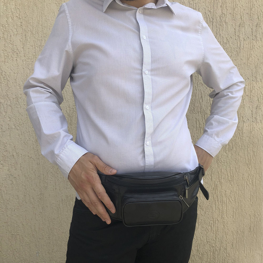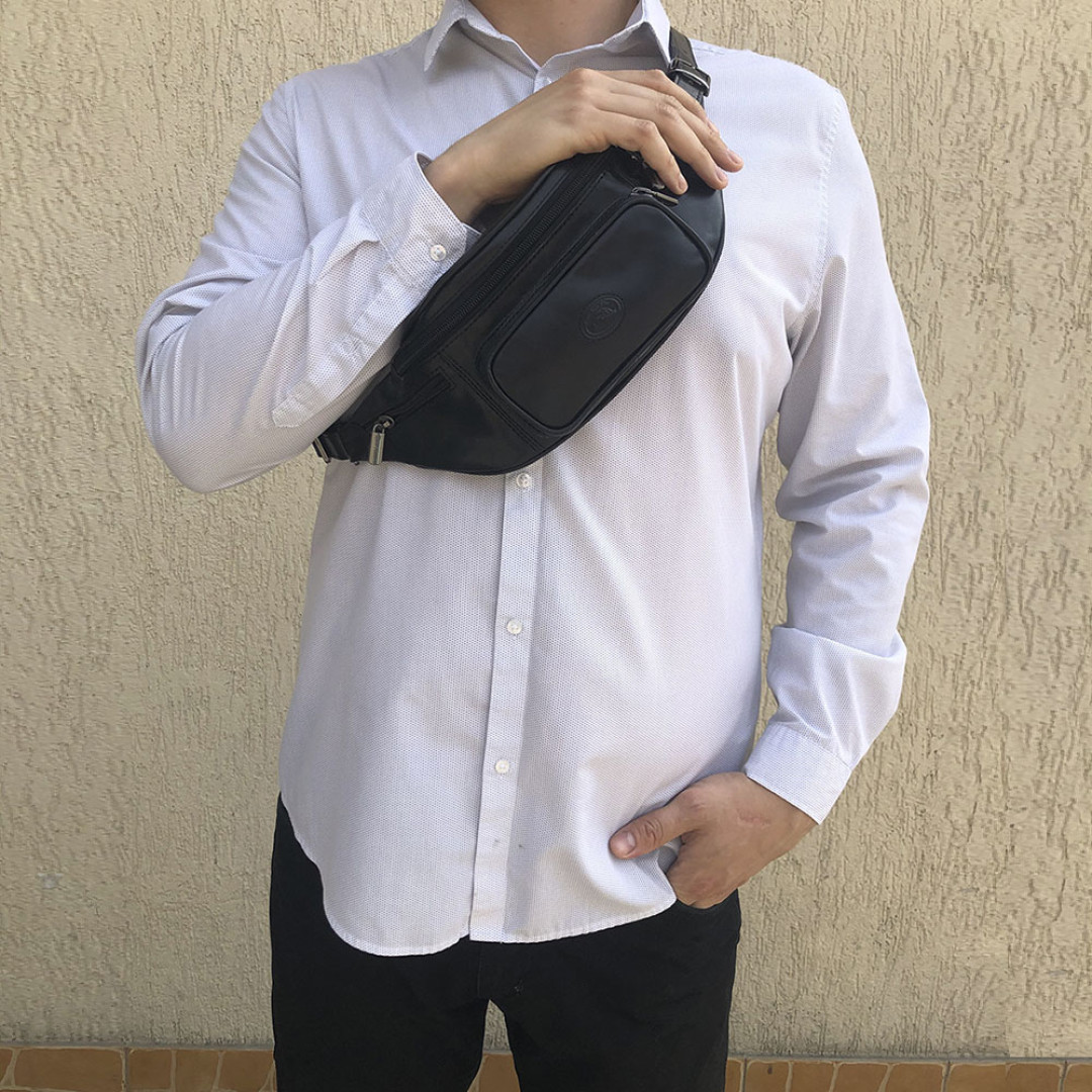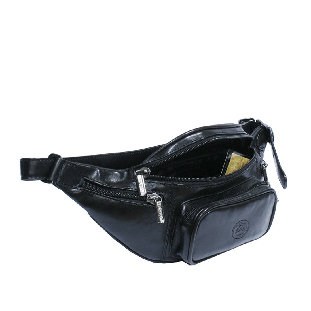 Мужская поясная сумка TONY PEROTTI выполнена из натуральной кожи в черном цвете.