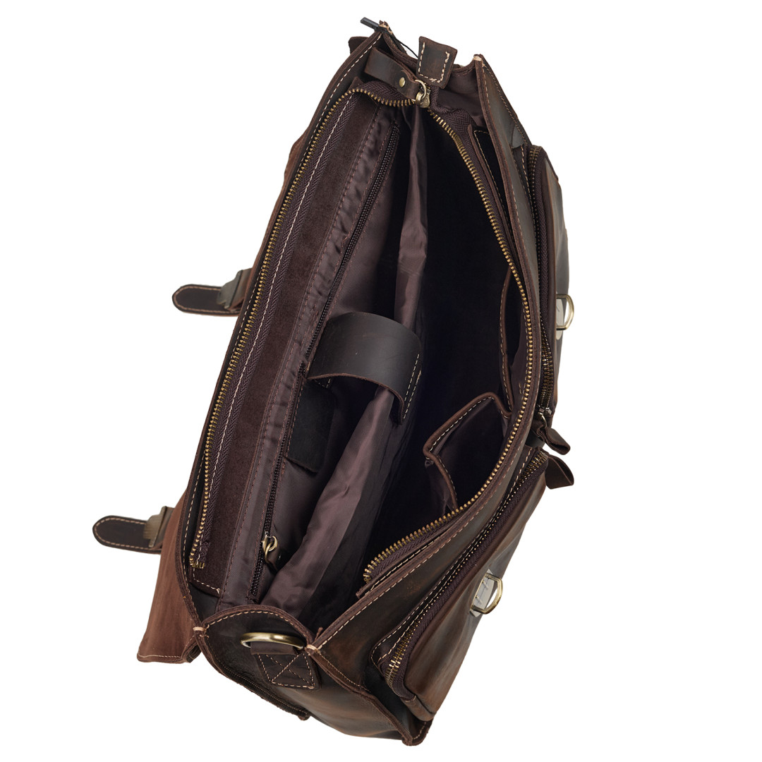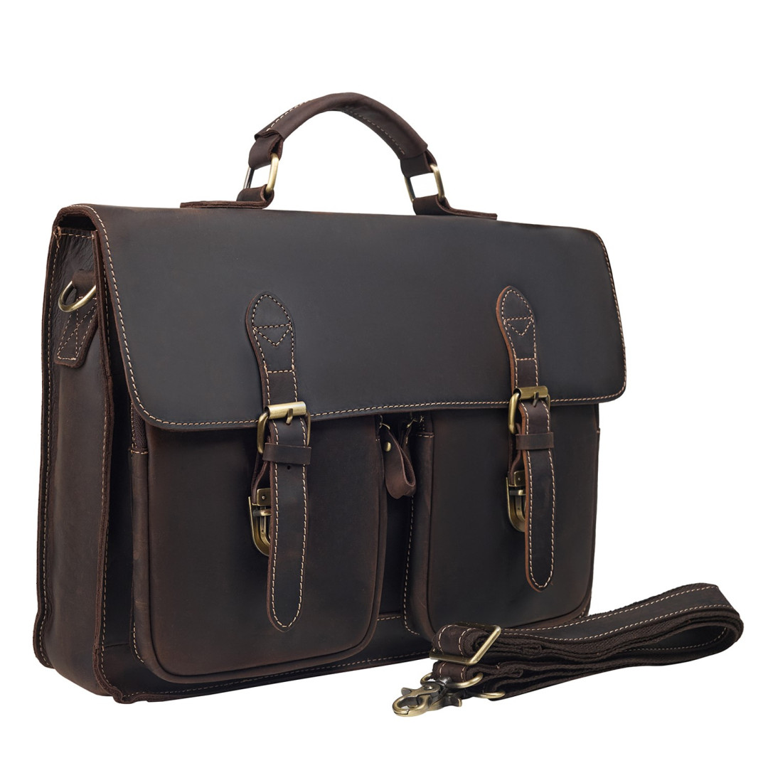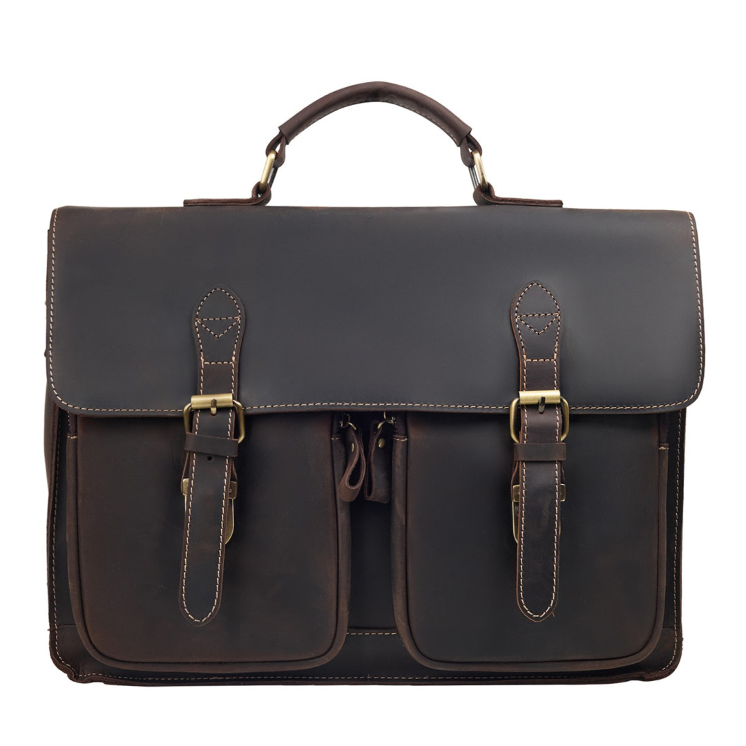 Мужской портфель Buffalo Bags выполнен из натуральной винтажной кожи в темно-коричневом цвете.