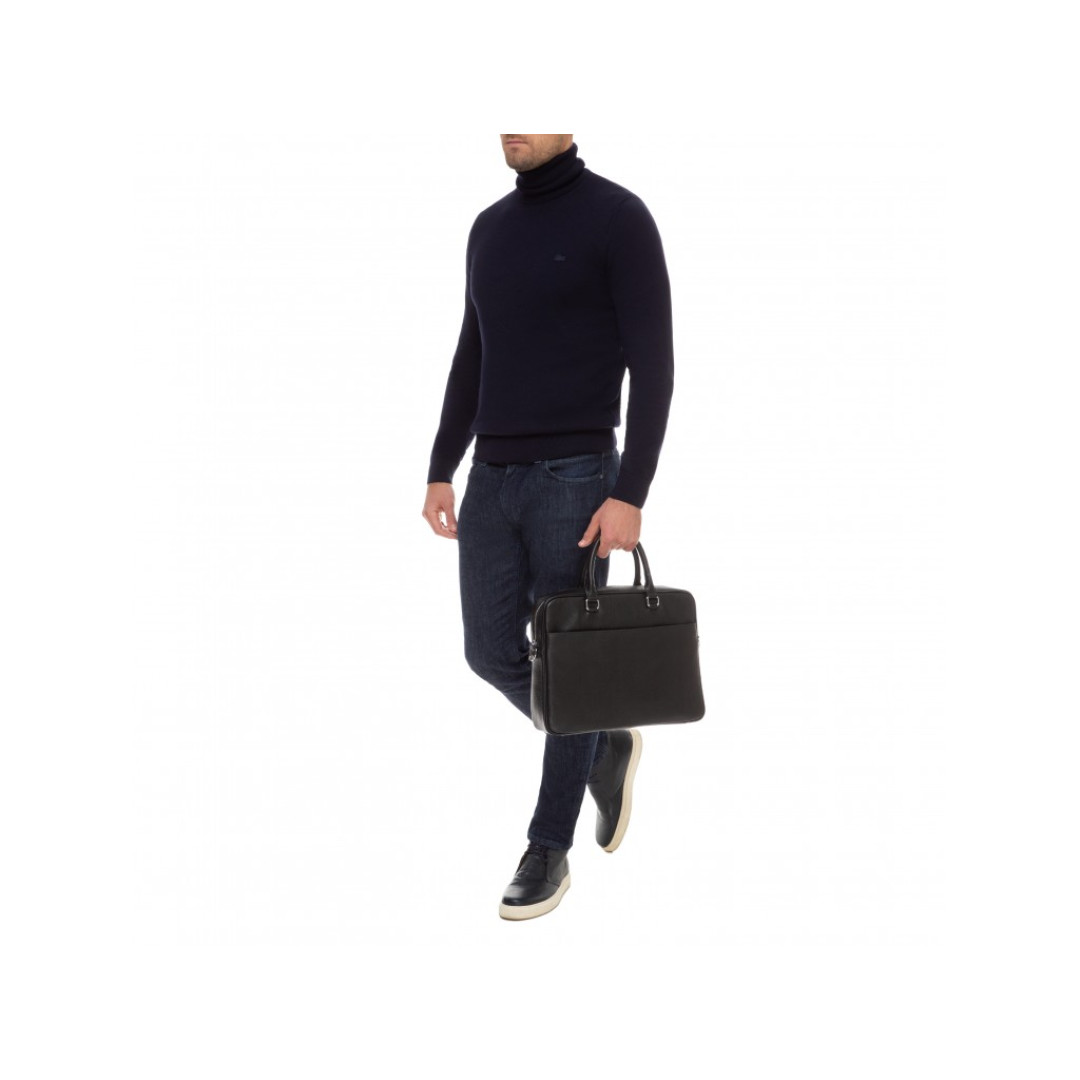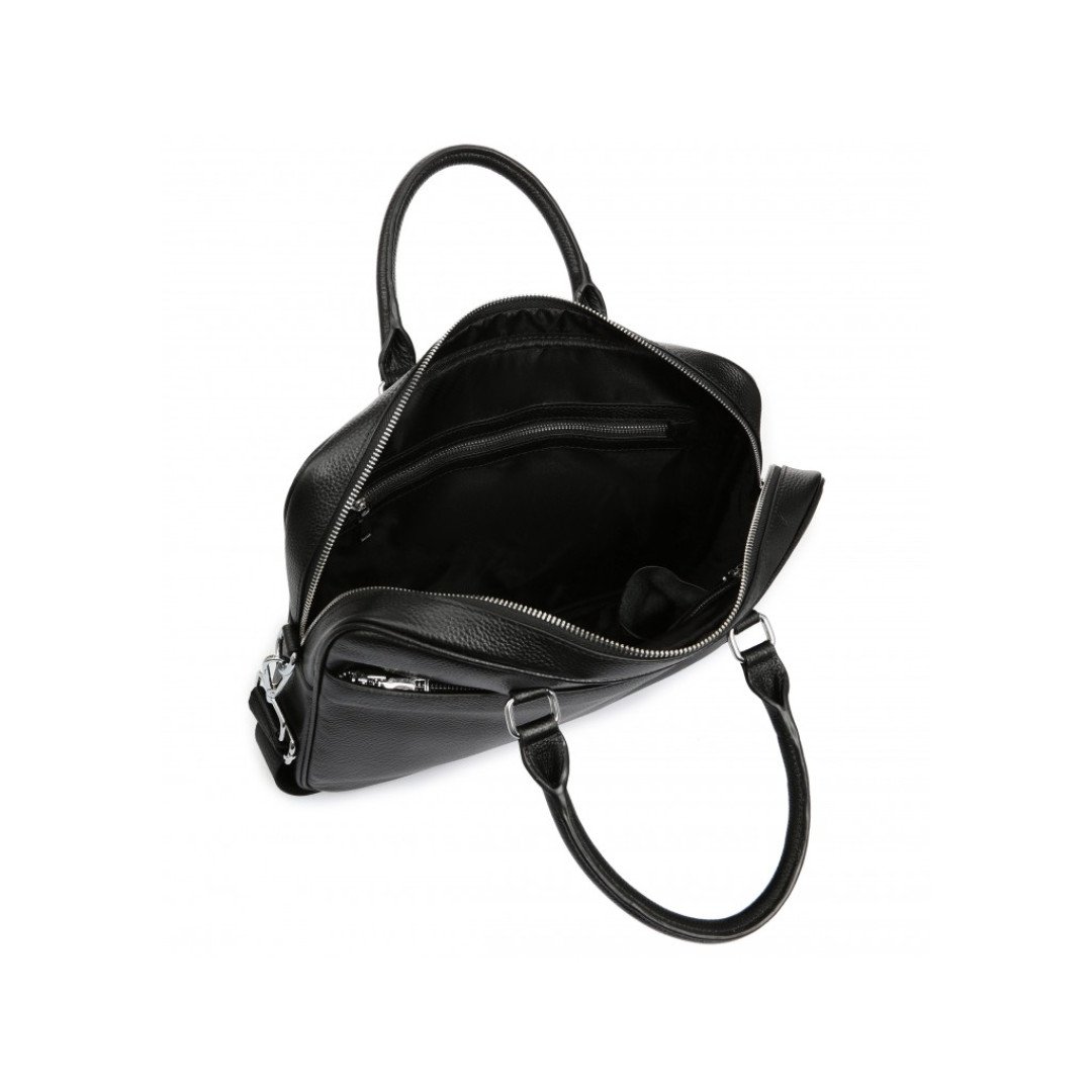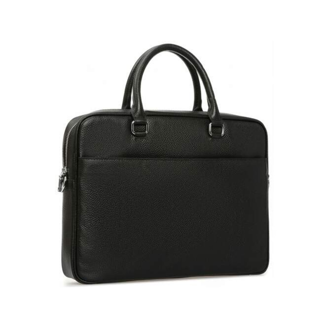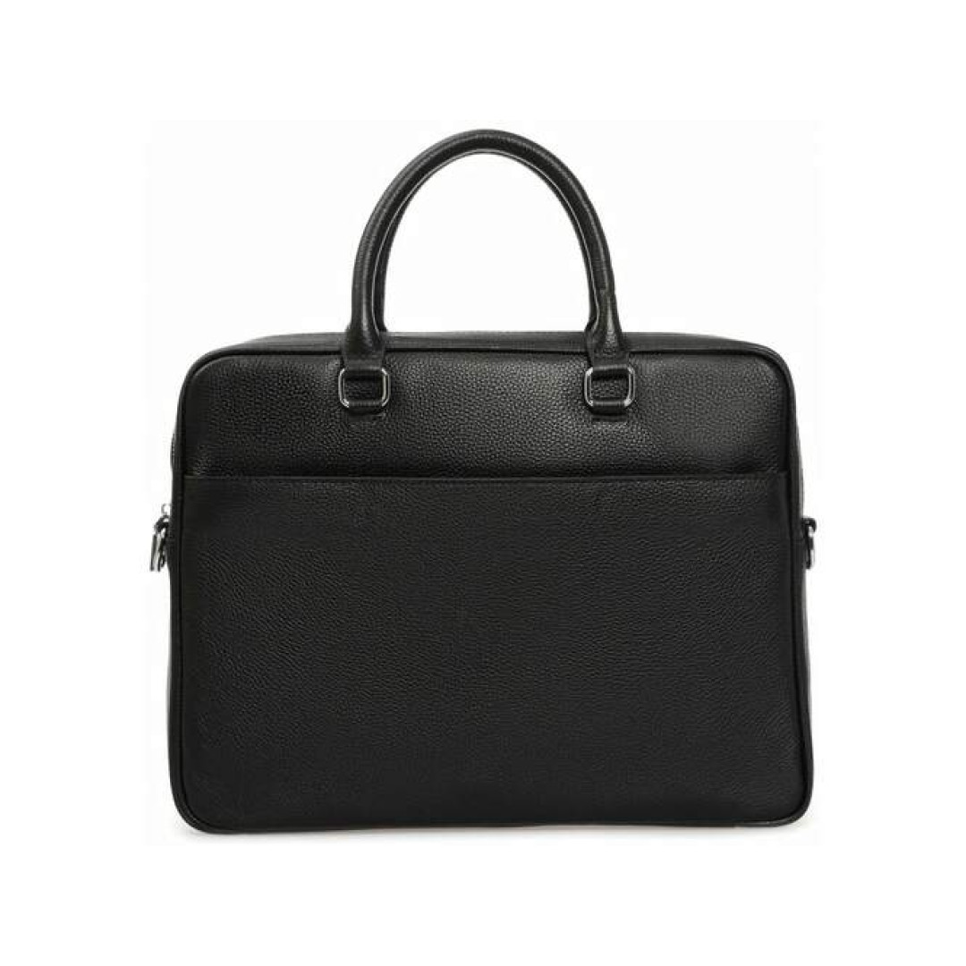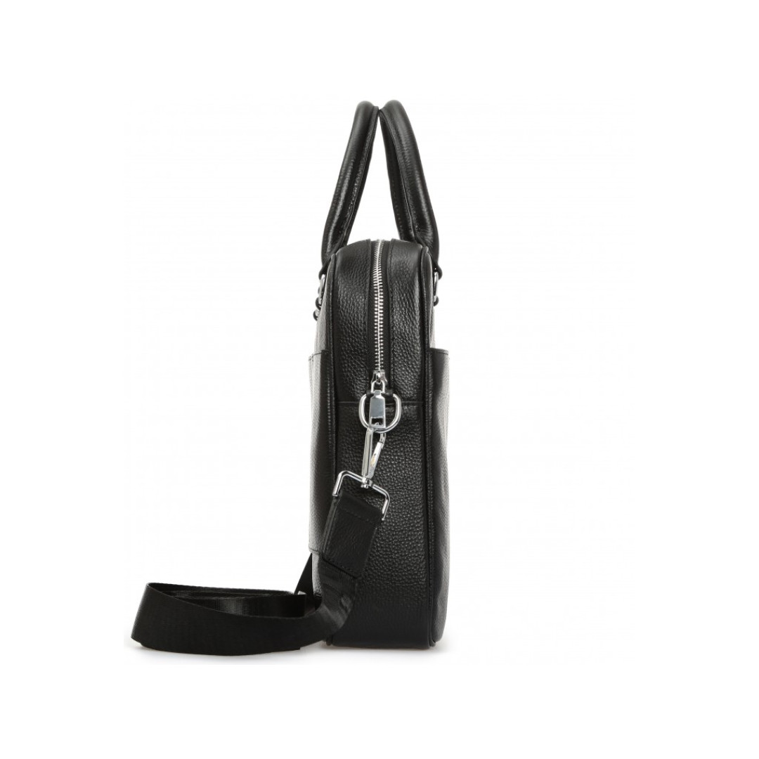 Особенности: основное отделение закрывается на молнию, внутри карман горизонтального типа. С лицевой стороны расположен дополнительный отсек по всему периметру сумки, который идеально подойдет для документов, портмоне или небольших гаджетов. Плотная подкладочная ткань, надежная фурнитура делают представленную модель незаменимым спутником для работы и командировок. С тыльной стороны шлейка для совместимости с дорожным чемоданом. Аксессуар предусматривает два способа носки -  в руке, с помощью вшитых кожаных ручек, или на плече, используя съемный наплечный ремень.