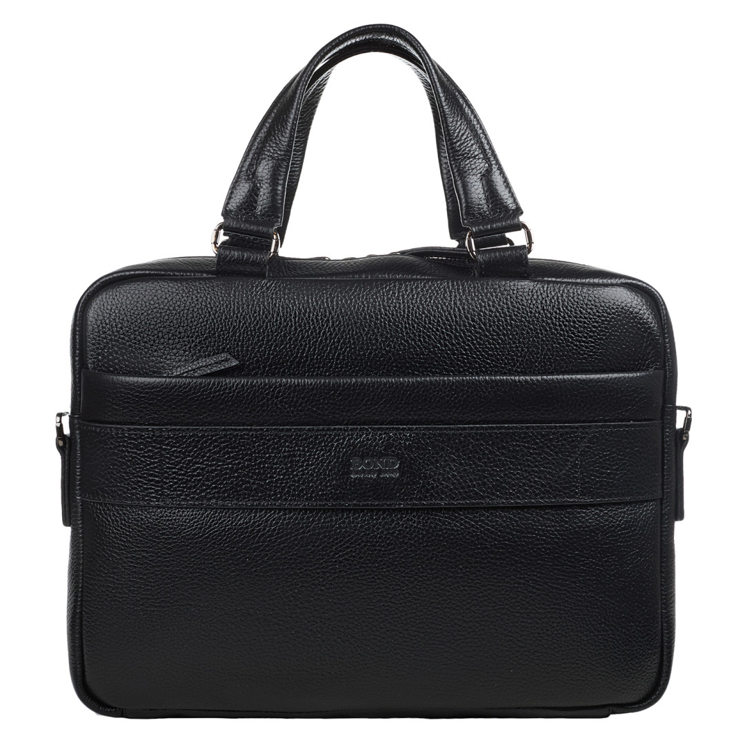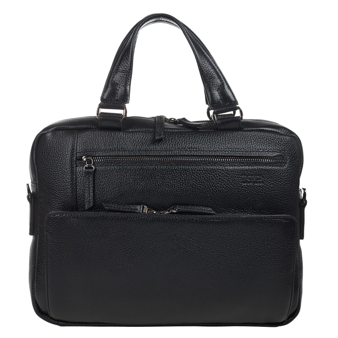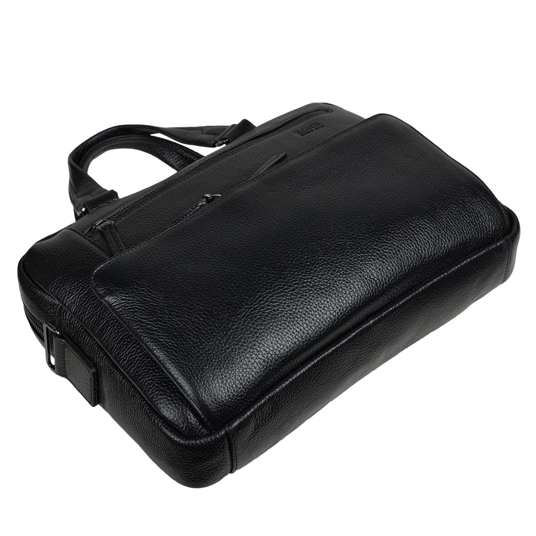 Мужской портфель BOND выполнен из натуральной кожи (флотар) в черном цвете.