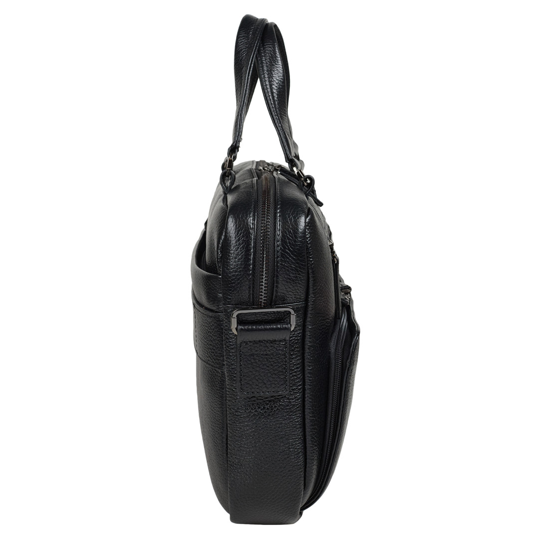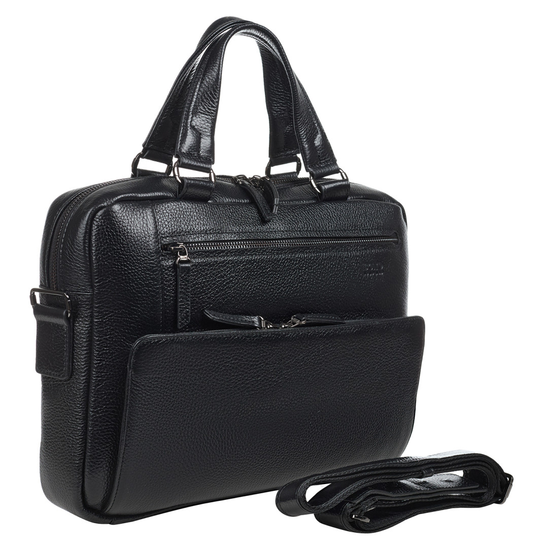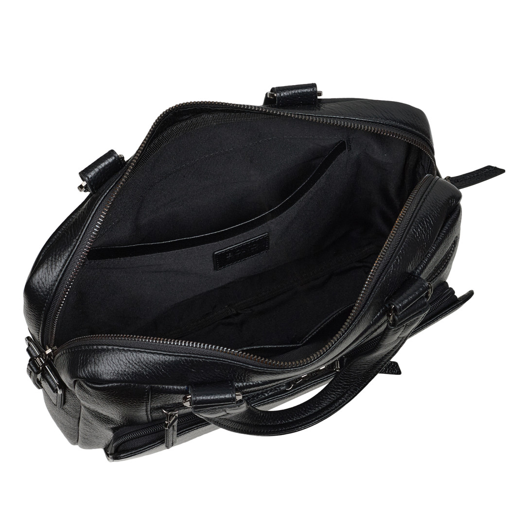 Мужской портфель BOND выполнен из натуральной кожи (флотар) в черном цвете.