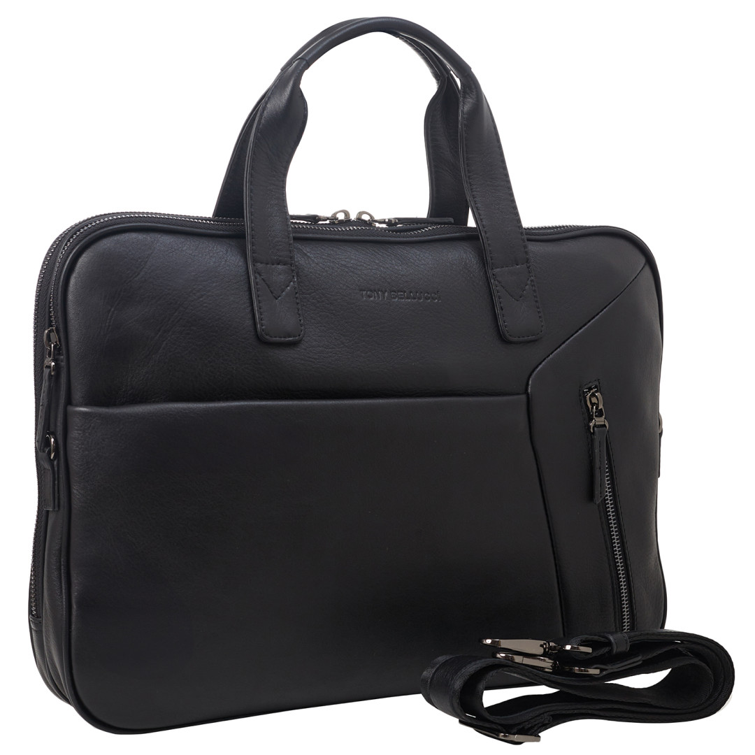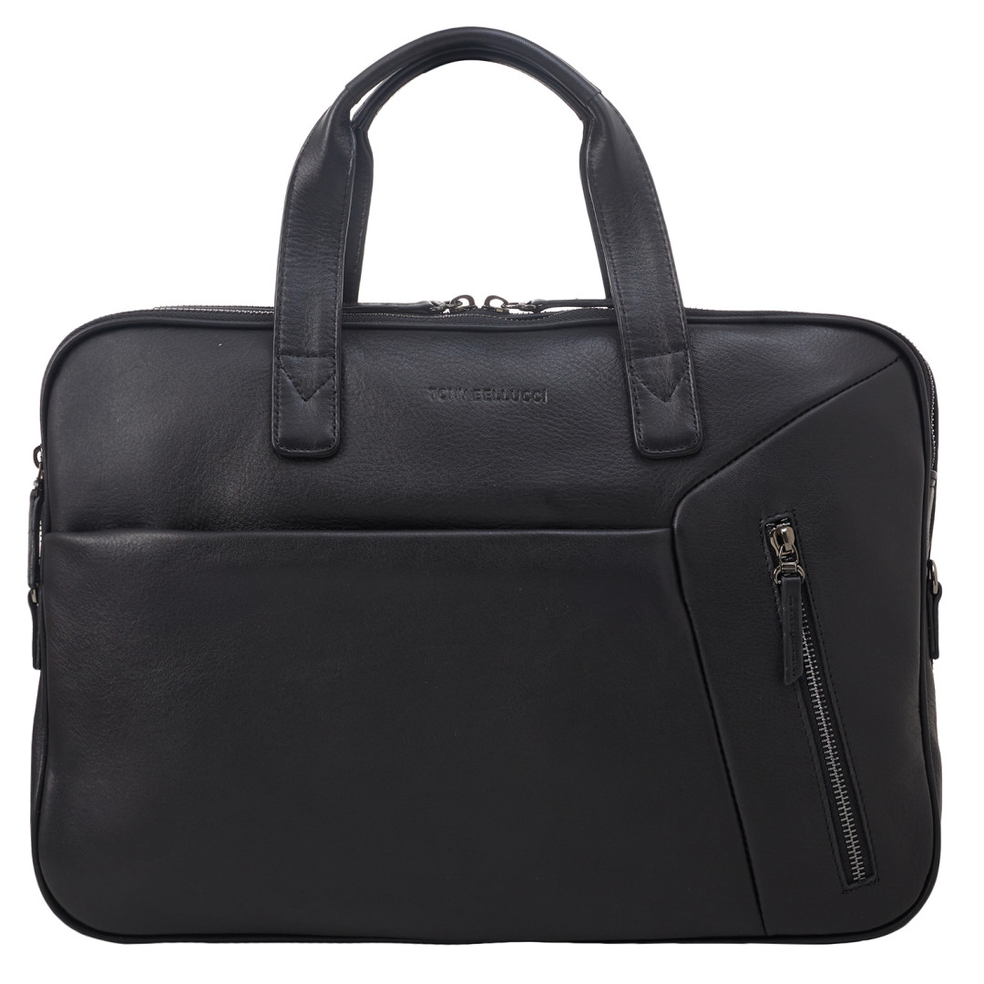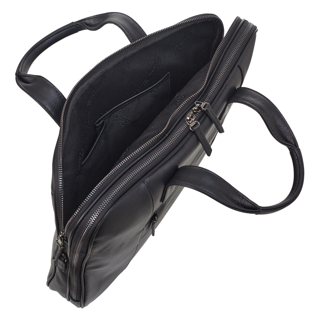 Мужской портфель Tony Bellucci выполнен из натуральной гладкой кожи в черном цвете.