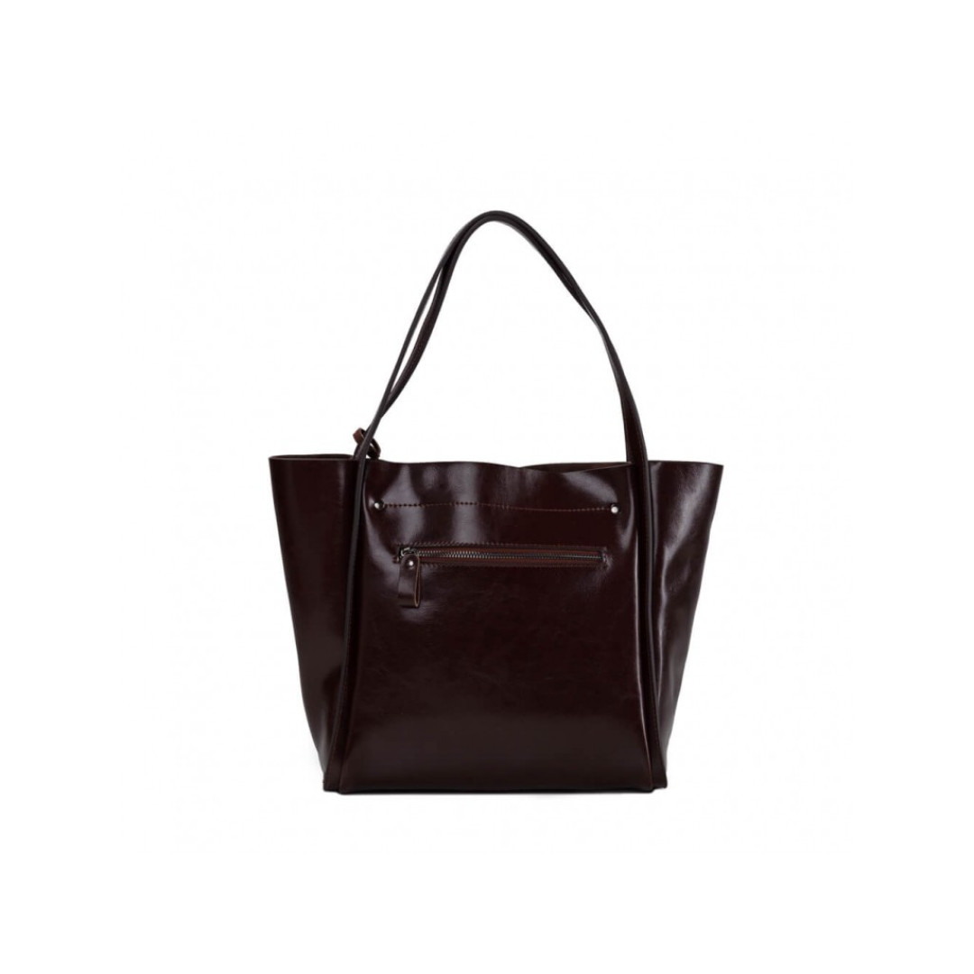 Особенности: имеет одно основное отделение, закрывающееся на молниевую застежку, которое поделено на две части с помощью подкладочной ткани нейтрального цвета. Внутри есть несколько открытых карманчиков для мелочей и отделение потайного типа на змейке. На тыльной стенке оснащена карманом на молнии. Носится с помощью двух кожаный мягких ручек, а их длина позволяет носить данный аксессуар как на плече, так и в руке
