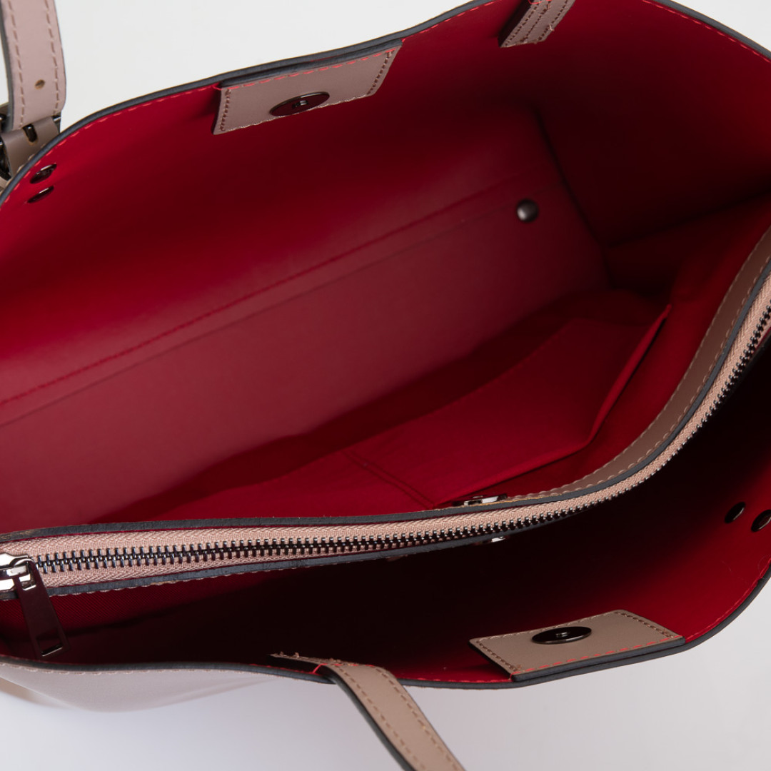 Особенности: имеет одно основное отделение с перегородкой в виде кармана на молнии. Закрывается на магнитные кнопки. В комплекте съёмный плечевой ремень.