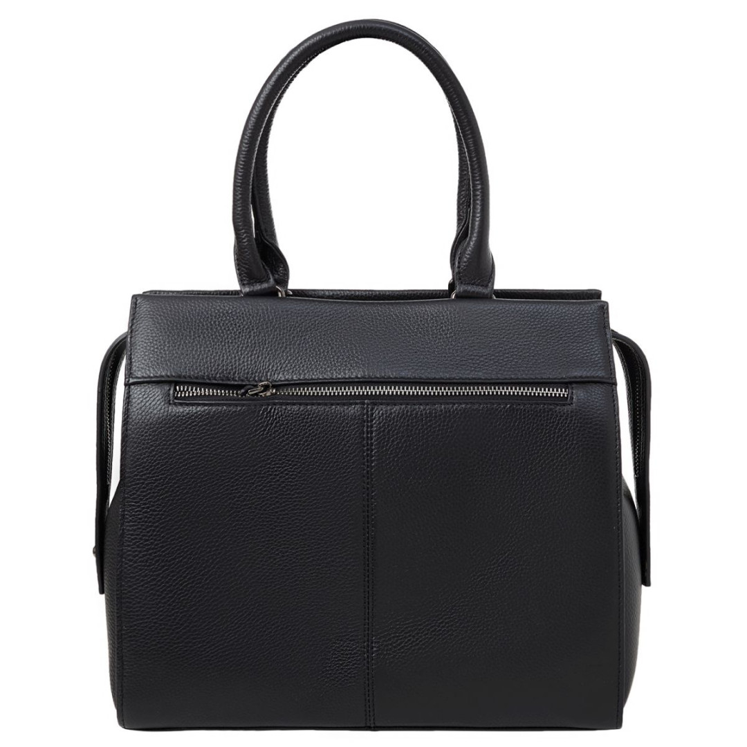 Особенности: внутри одно основное отделение с перегородкой в виде кармана на молнии, боковой карман горизонтального типа на змейке, два отсека открытого типа. С тыльной стороны карман на молнии. В комплекте съёмный плечевой ремень. Подкладка - текстиль. Фурнитура - металл, металлические ножки.