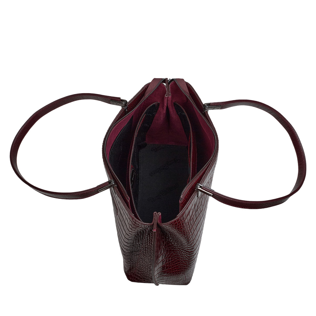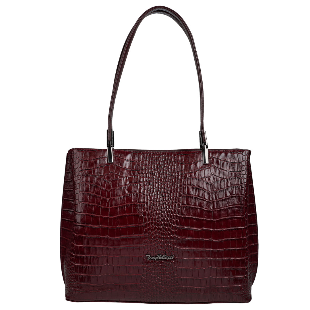 Женская сумка Tony Bellucci выполнена из натуральной кожи в бордовом цвете.