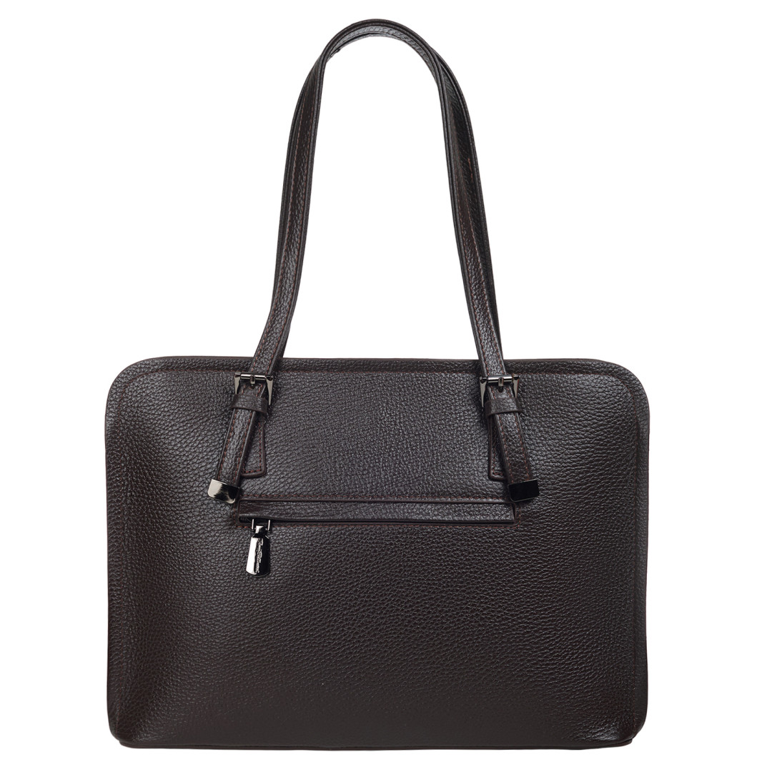 Функциональность сумки дополняют два наружных кармана на магнитных кнопках и скрытый отсек на молнии на тыльной стороне, а входящий в комплект длинный регулируемый ремень позволяет комфортно носить аксессуар на плече, делая его незаменимым дополнением к деловому гардеробу.
