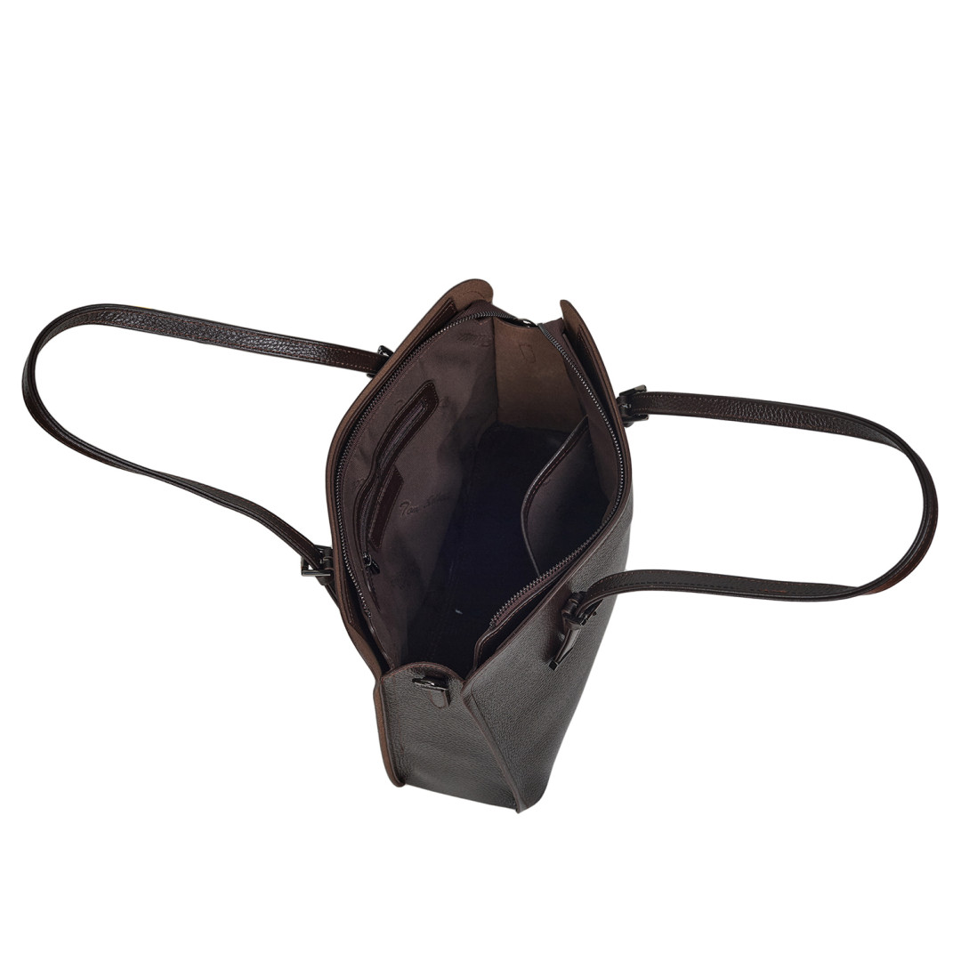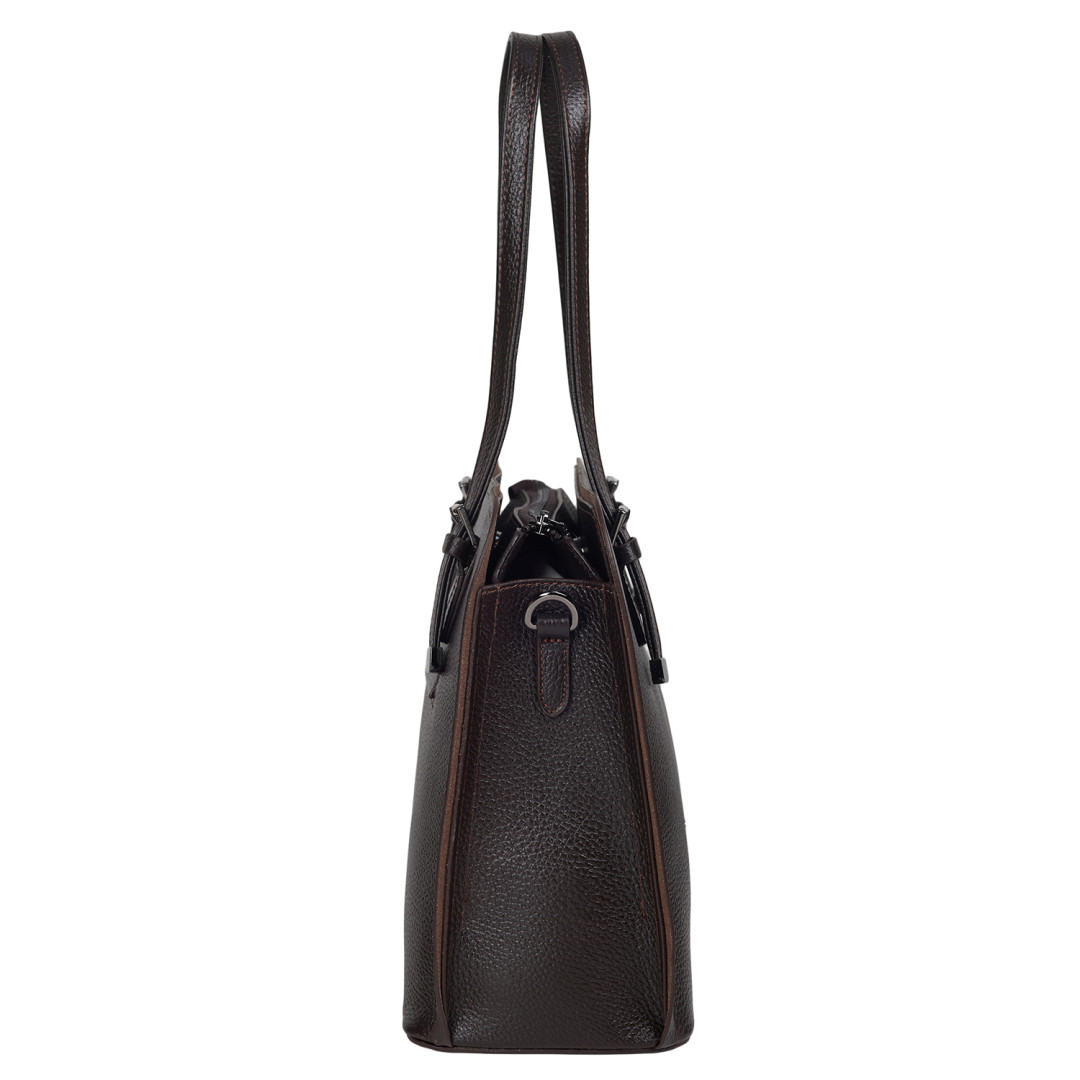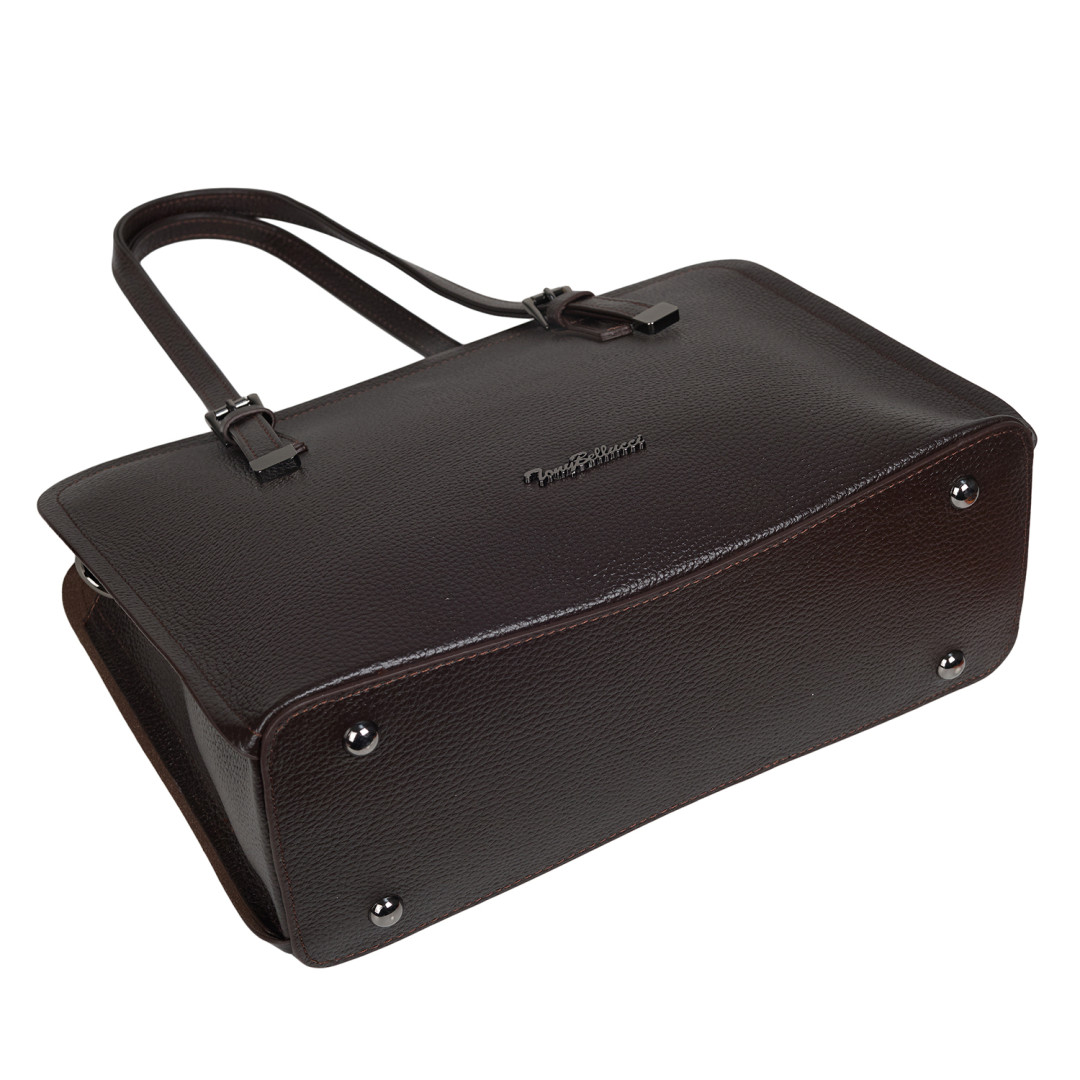Женская сумочка Tony Bellucci выполнена из натуральной фактурной кожи коричневого цвета, представляет собой идеальное сочетание элегантности и практичности.