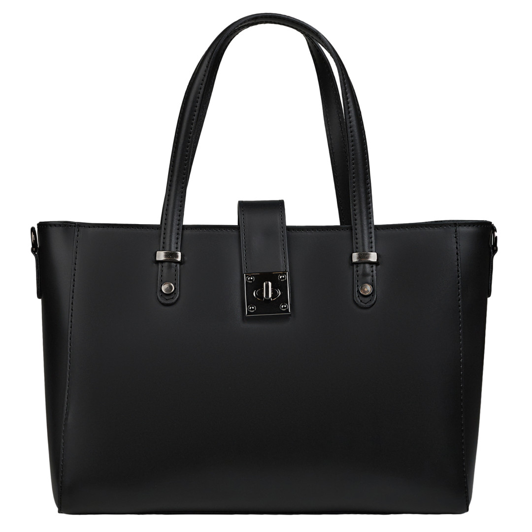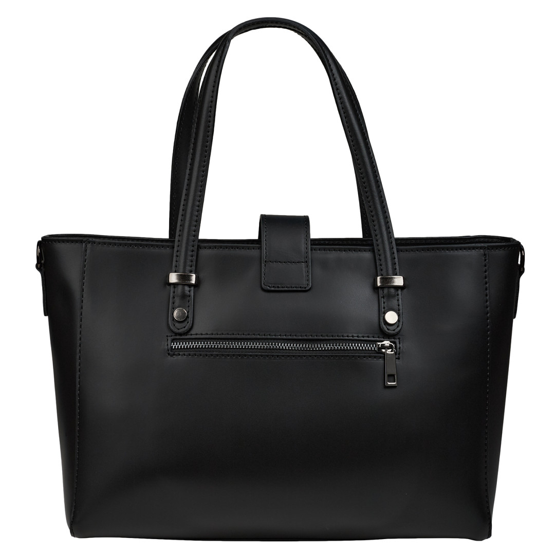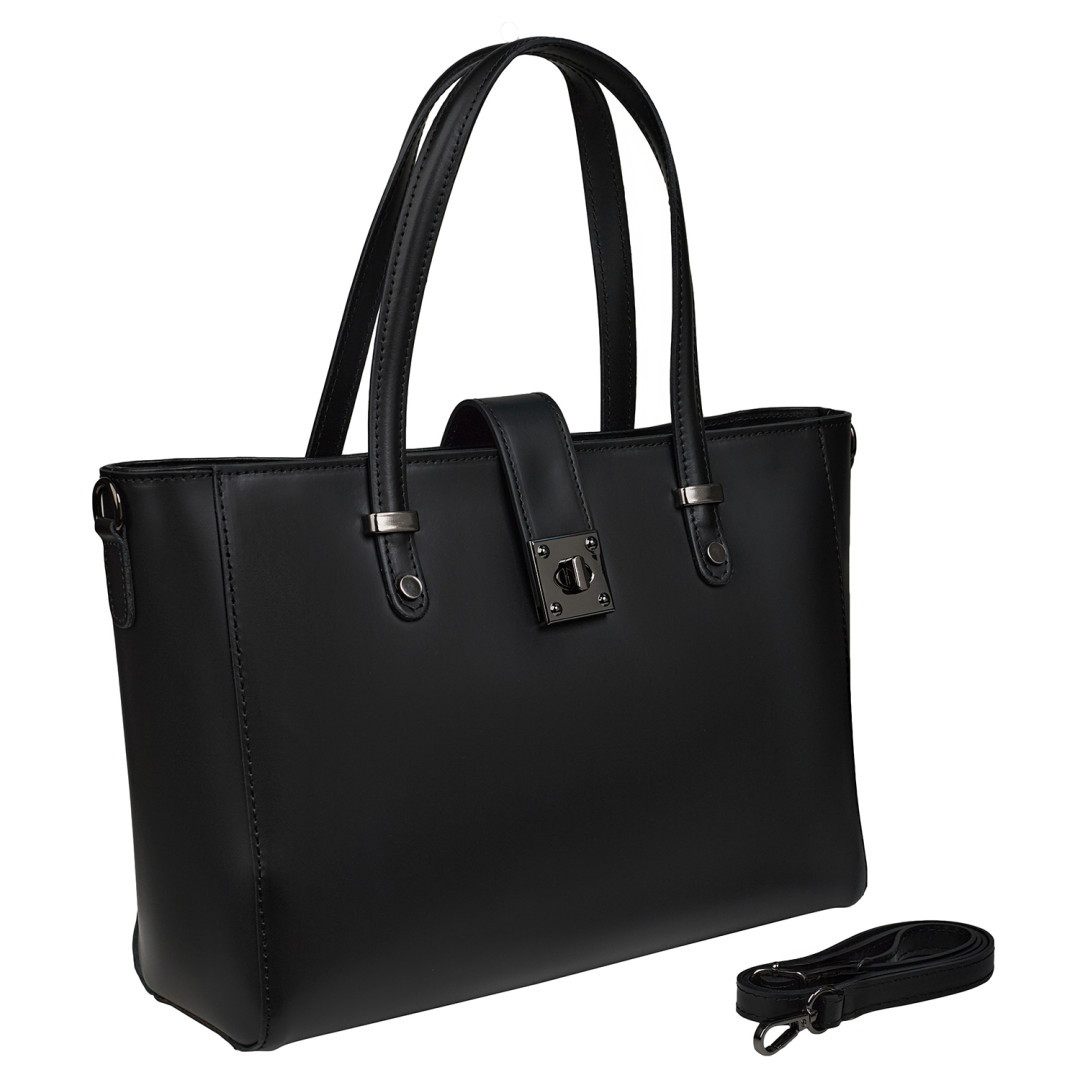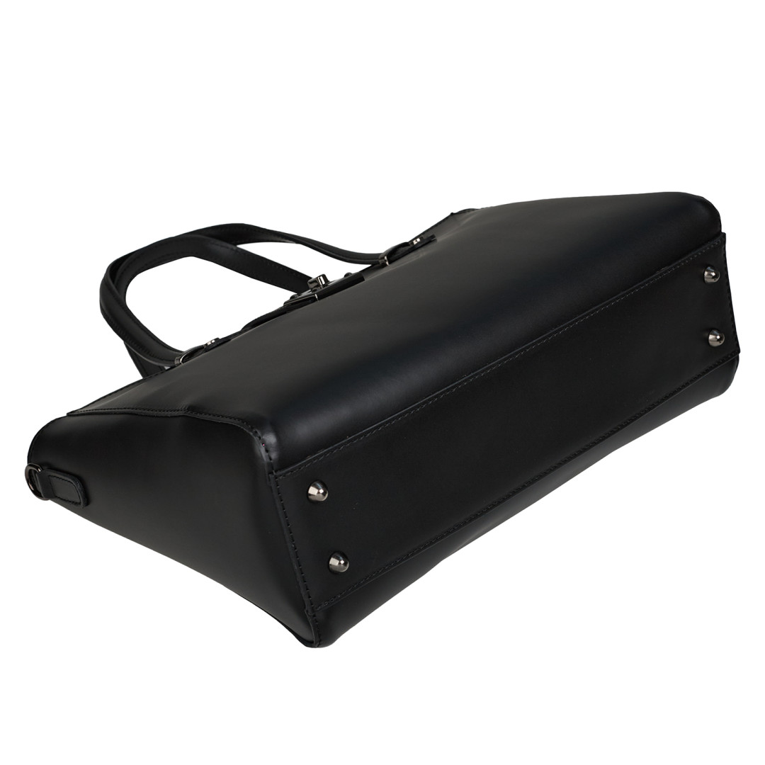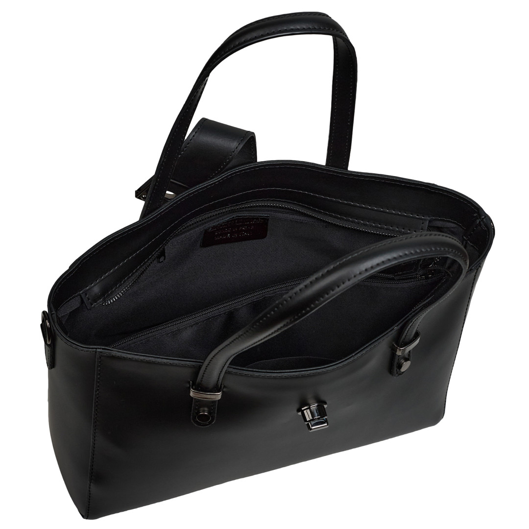Женская деловая сумка Virginia Conti выполнена из натуральной гладкой кожи в черном цвете.