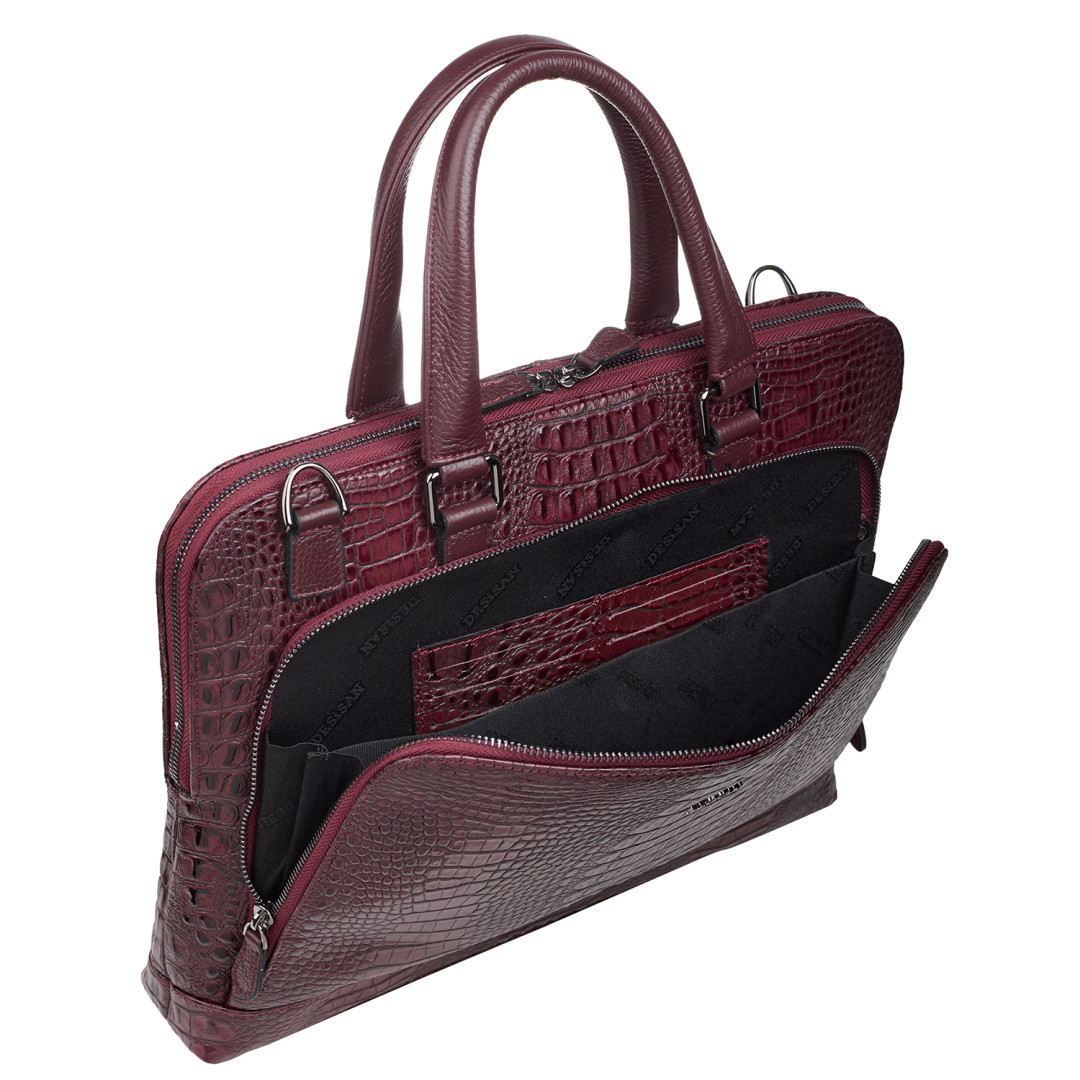 Кожаный женский портфель Desisan бордовый 661-60 кроко - популярные модели для вашего стиля