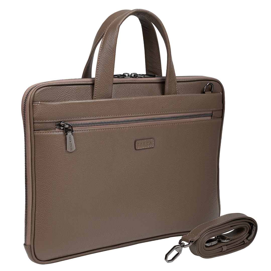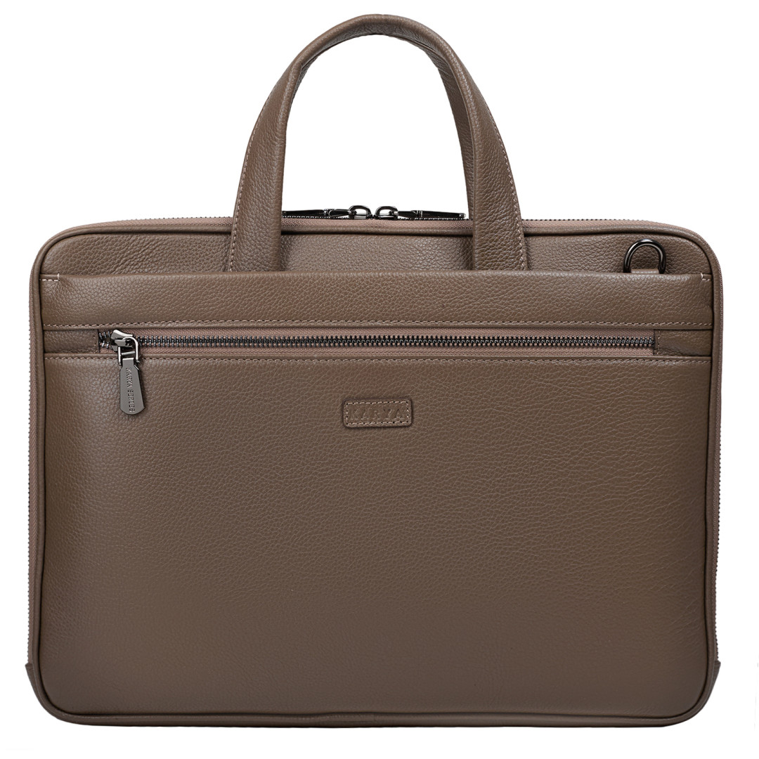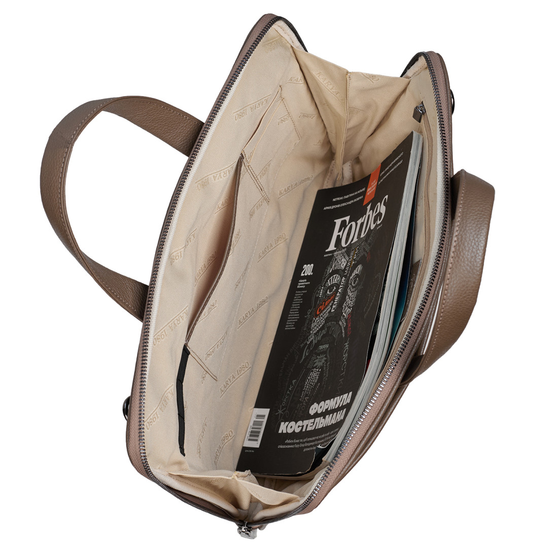 Женский портфель KARYA выполнен из натуральной кожи (флотар) в кофейном цвете.