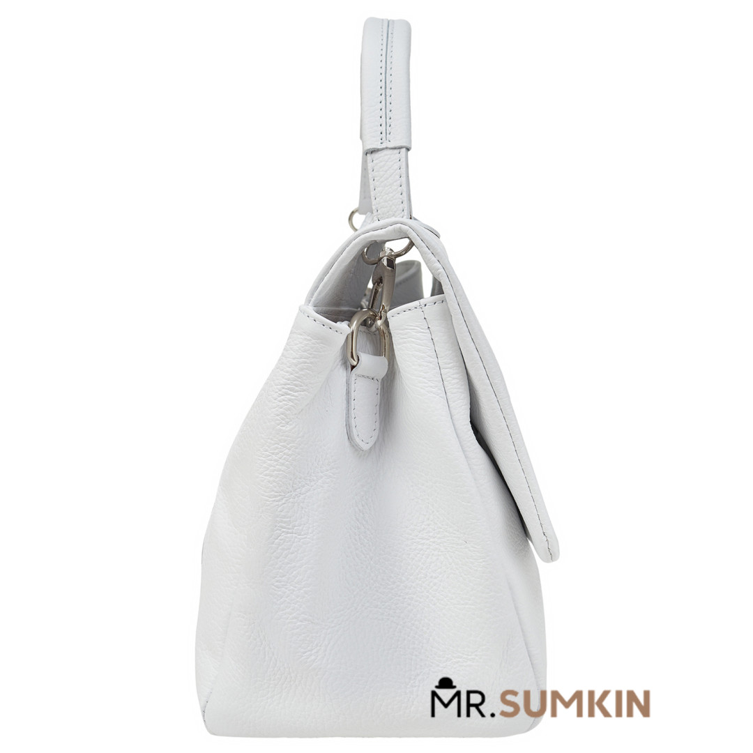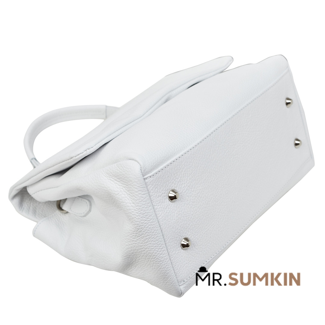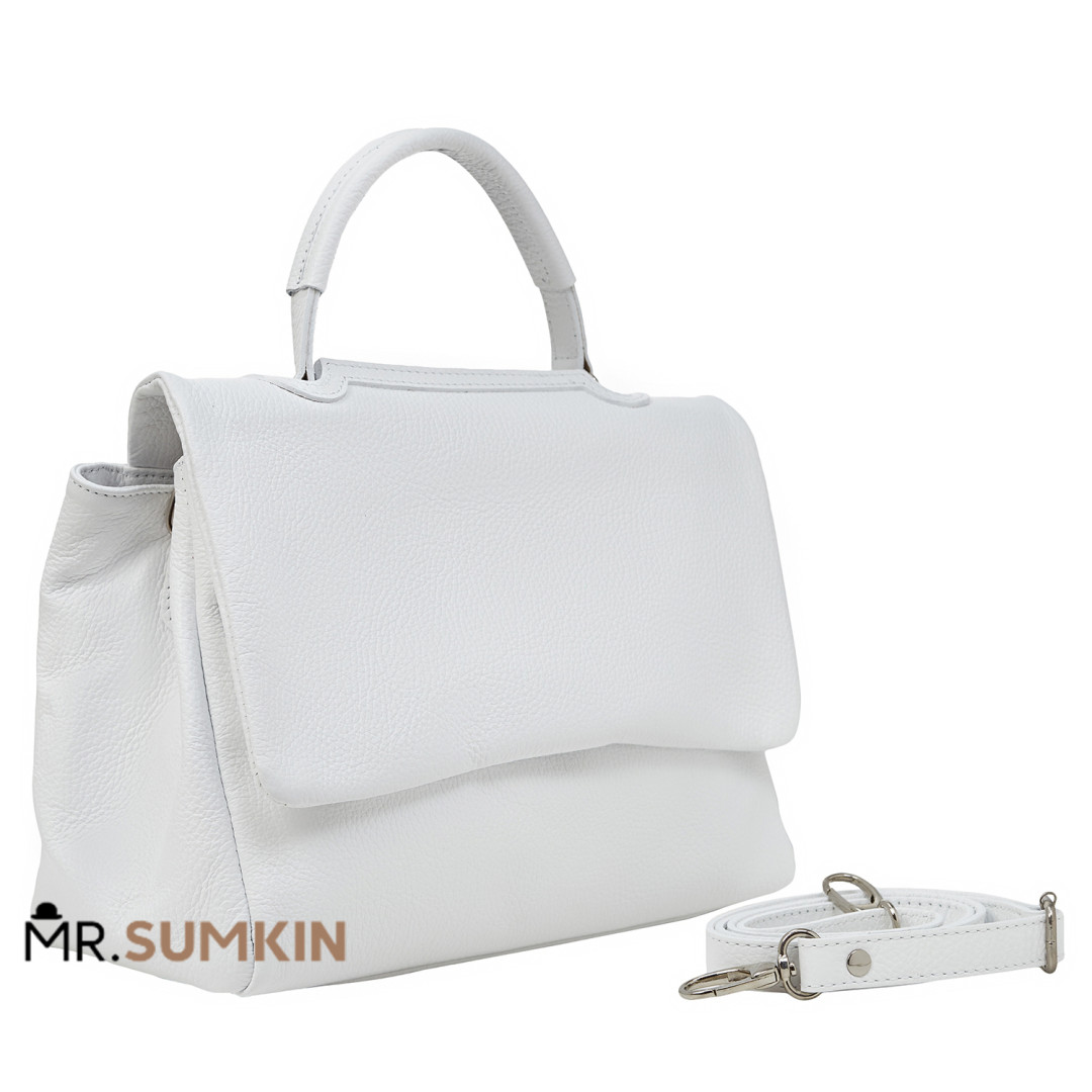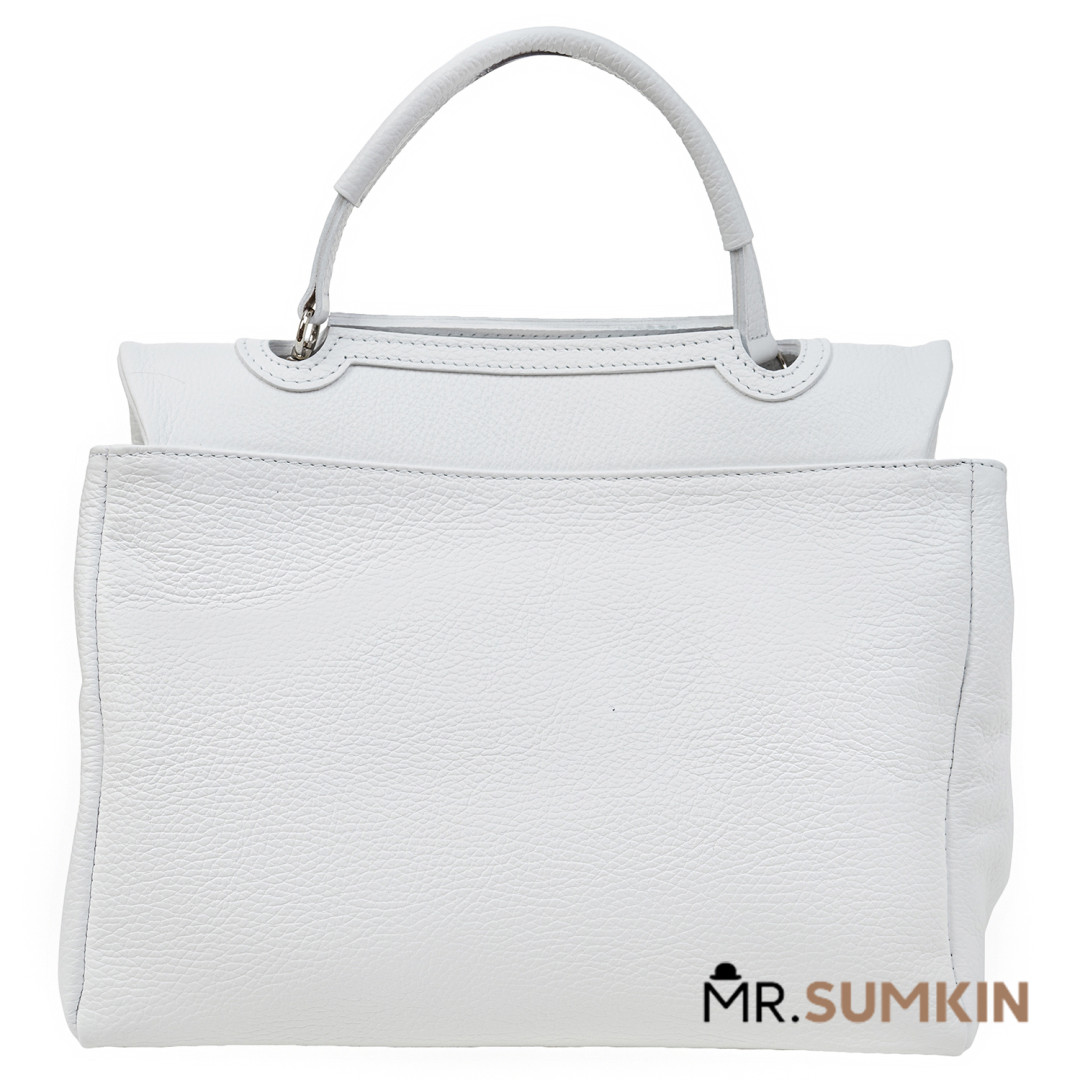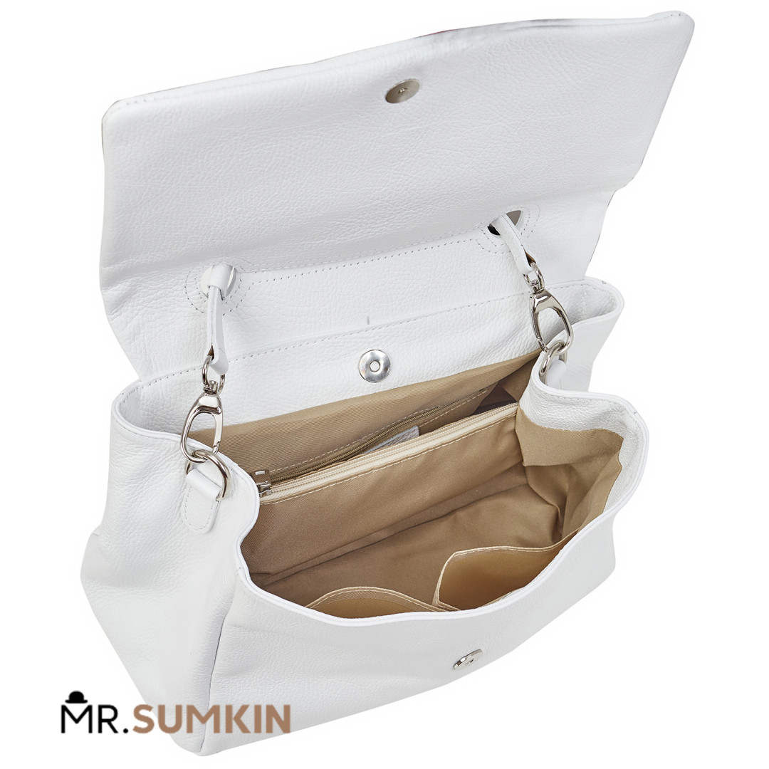 Особенности: одно общее отделение, разделено перегородкой на два отдела. Есть два кармана на молнии, и один для телефона и документов. Клапан на магнитных кнопках. Ручка в сумке съёмная. В комплекте длинный ремешок для носки на плече