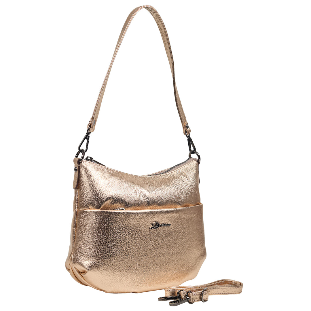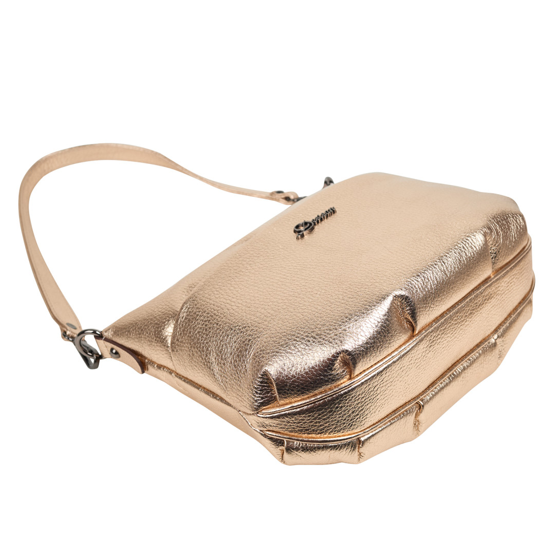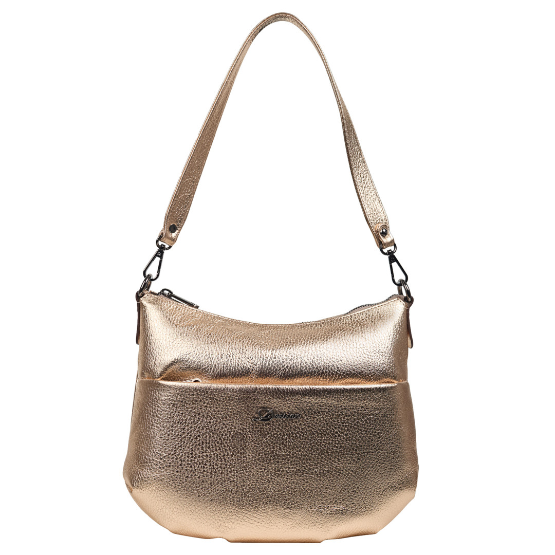 Женская сумочка Desisan выполнена из натуральной кожи (флотар) в золотистом цвете.