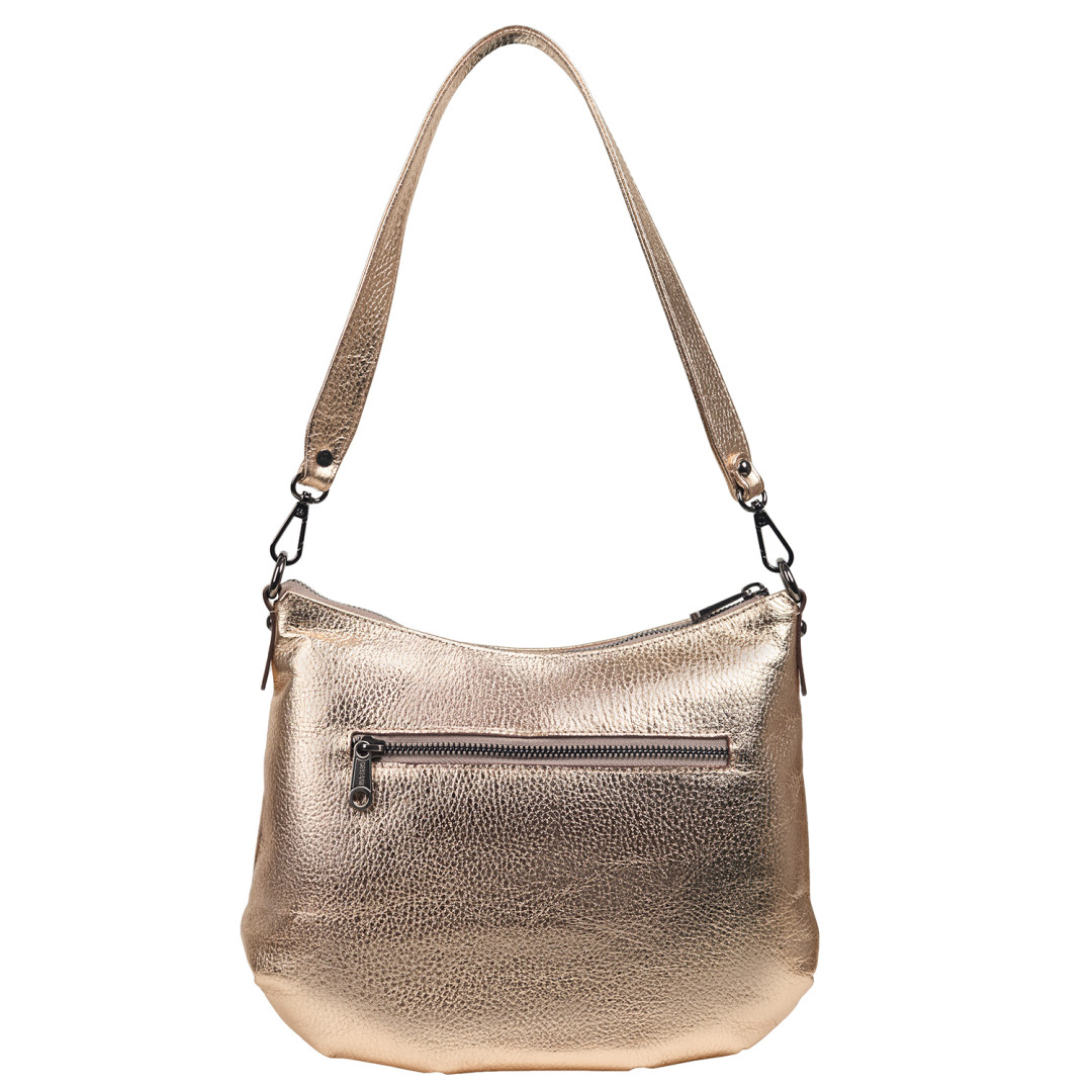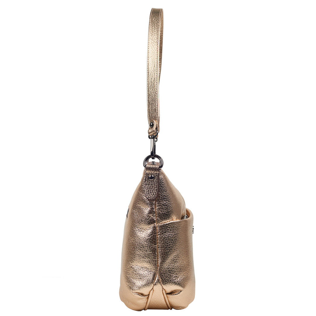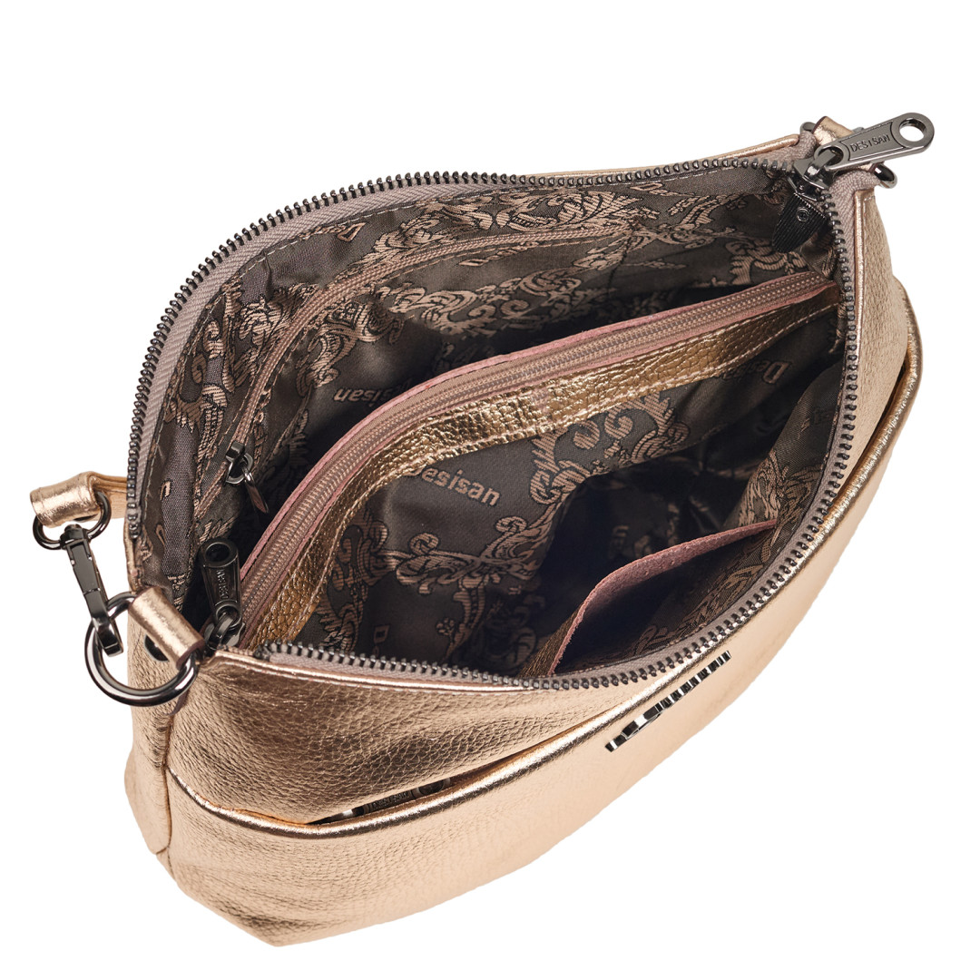 Женская сумочка Desisan выполнена из натуральной кожи (флотар) в золотистом цвете.