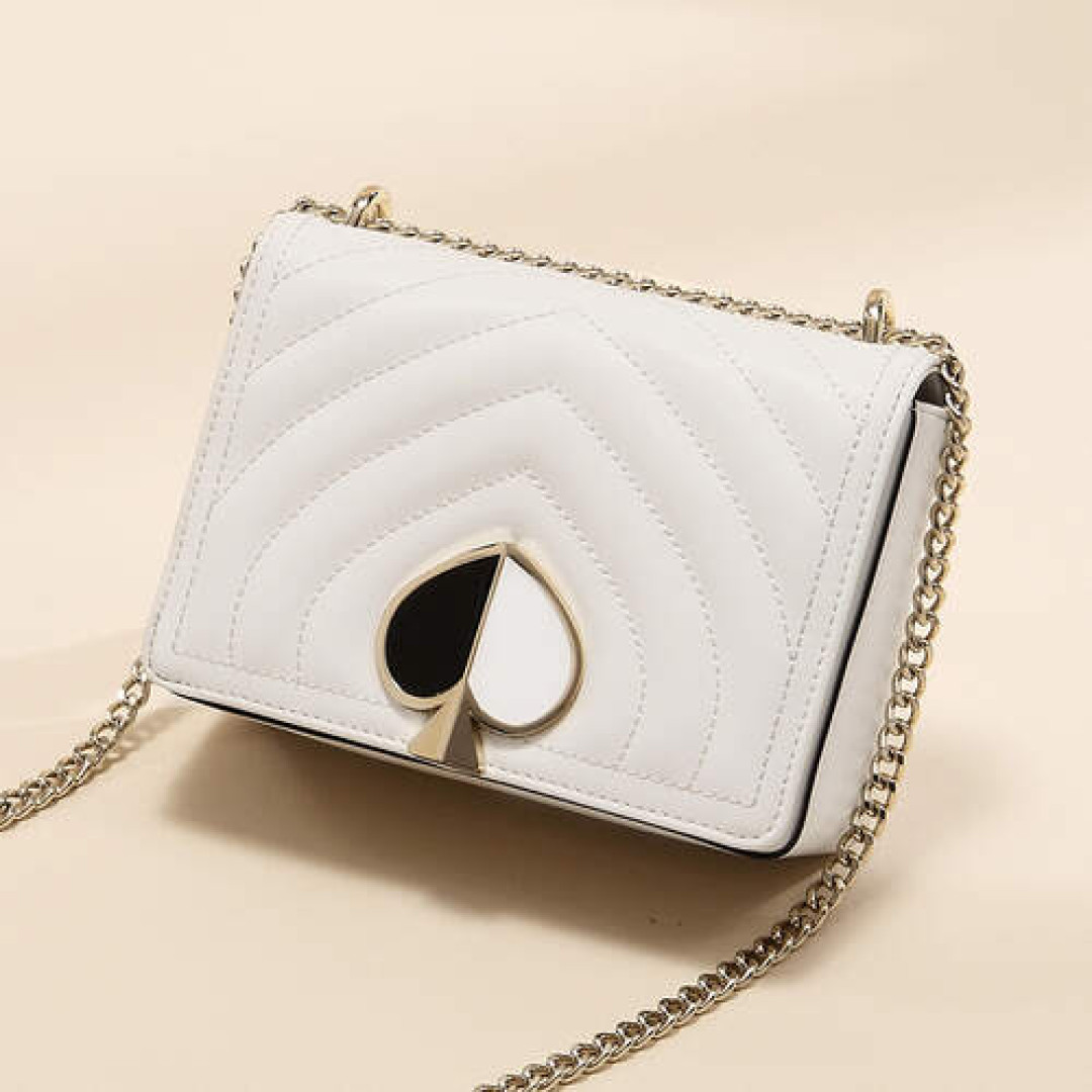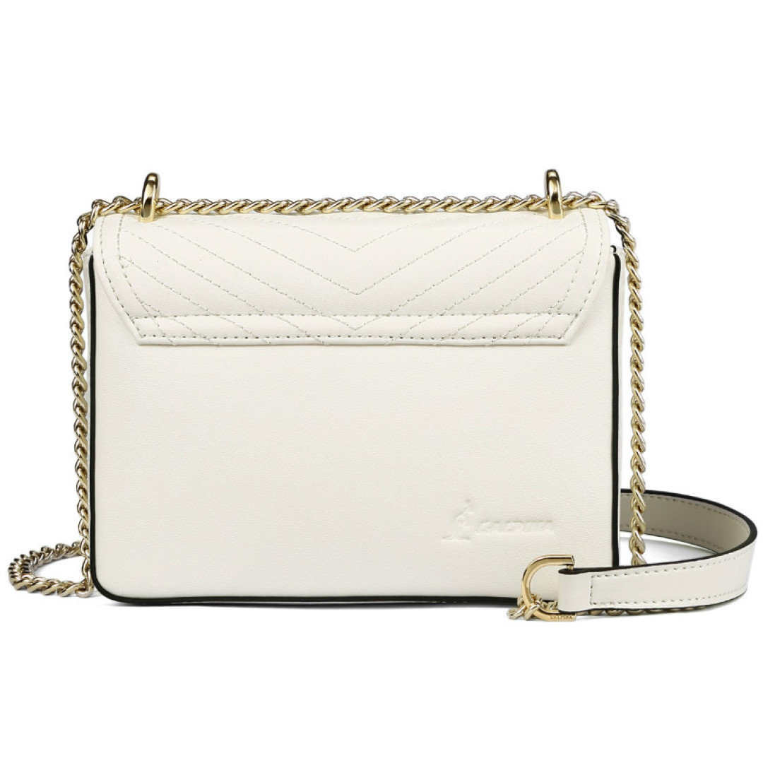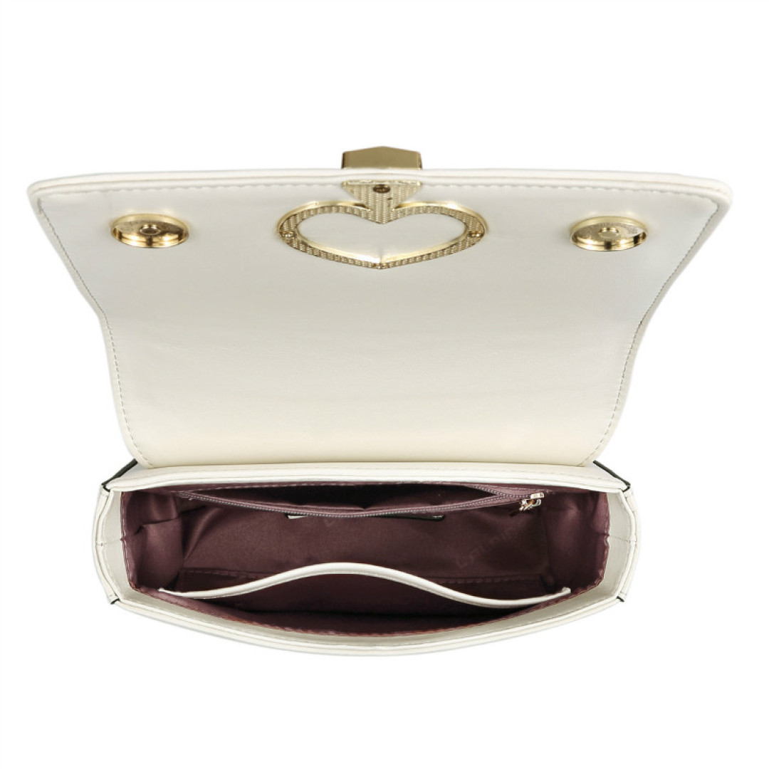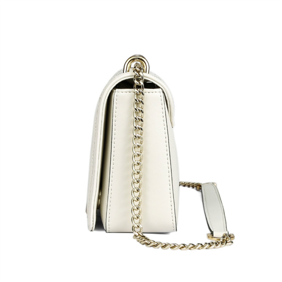 Особенности: внутри одно большое отделение и 2 кармана. Клапан на магнитных кнопках. Подкладка - текстиль. Фурнитура - золото. В комплекте несъемный плечевой ремень - цепочка.