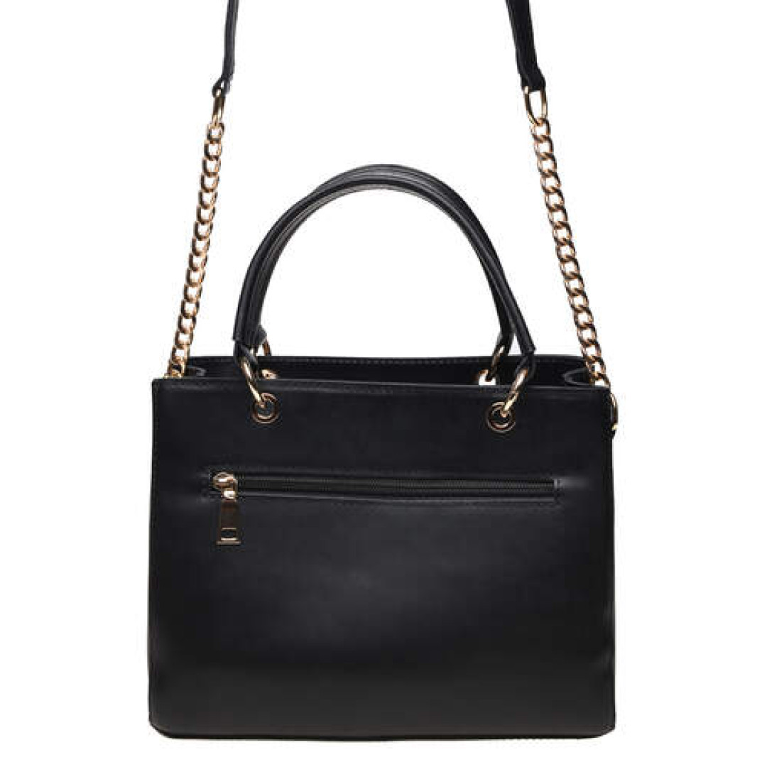Особенности: имеет короткие удобной длины ручки и несъемный плечевой ремень цепочку. Основное отделение закрывается на молнию. Внутри имеет 2 отдела и 4 кармана. Снаружи — 1 карман на молнии.