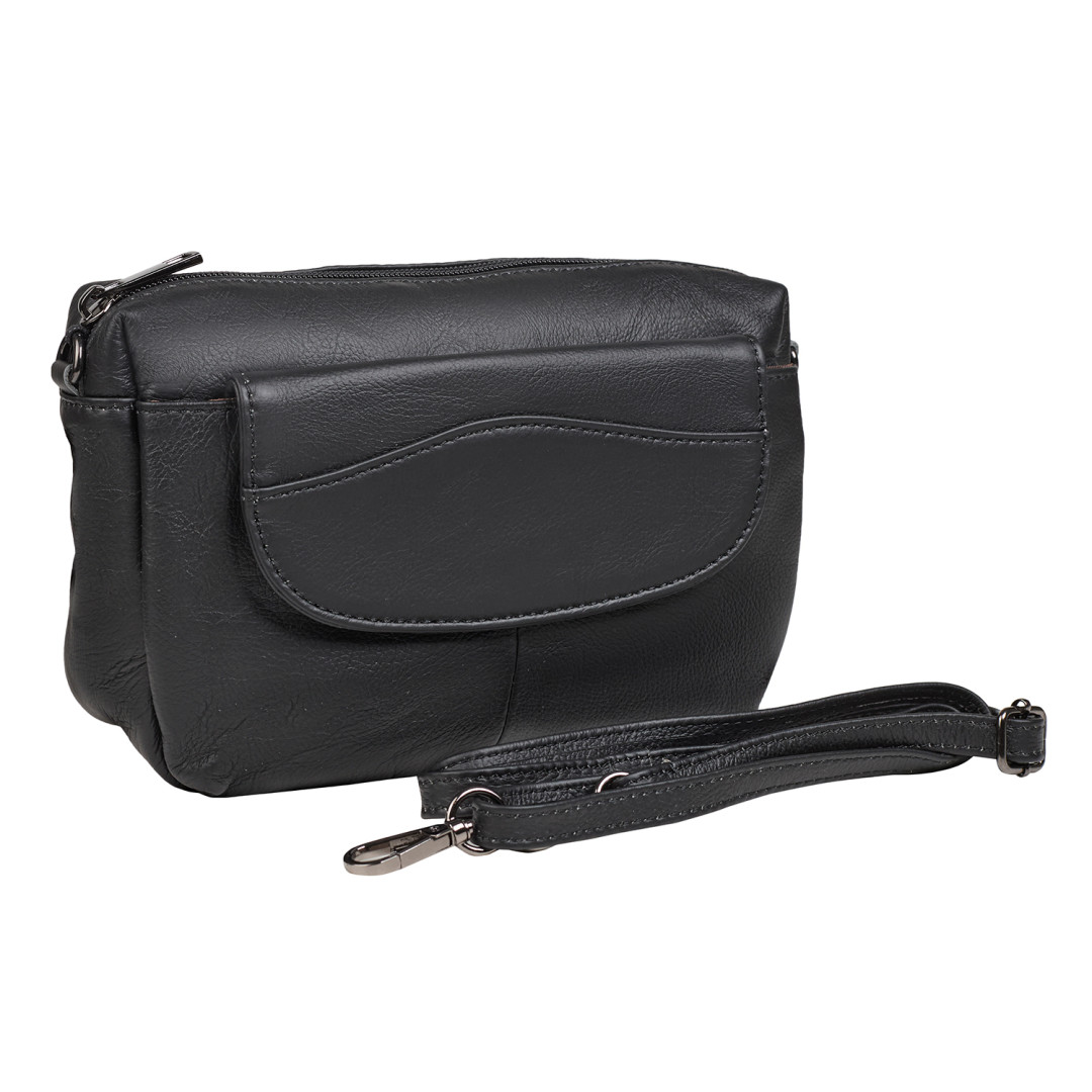 Модель дополнена длинным кожаным ремнём, который регулируется по длине и позволяет носить сумку на плече или через плечо.