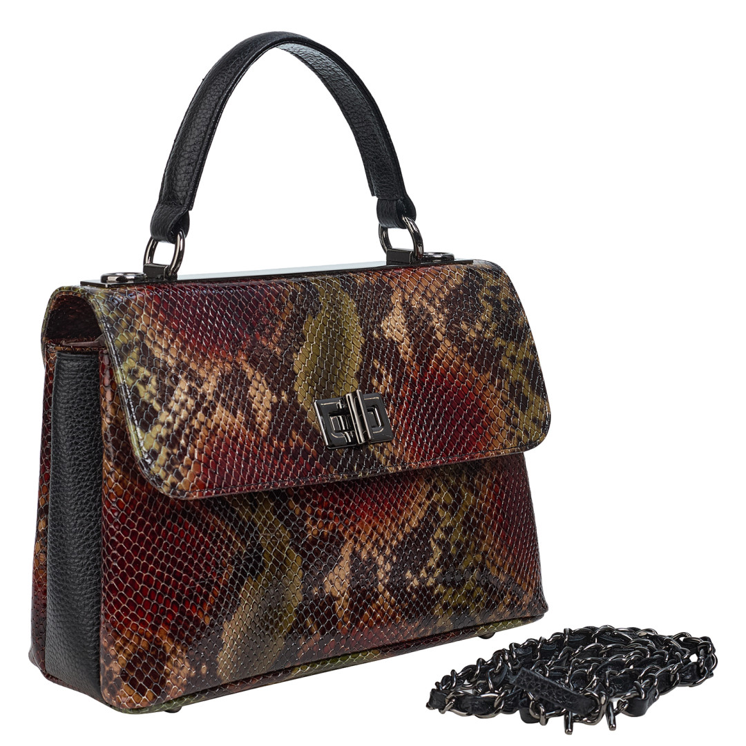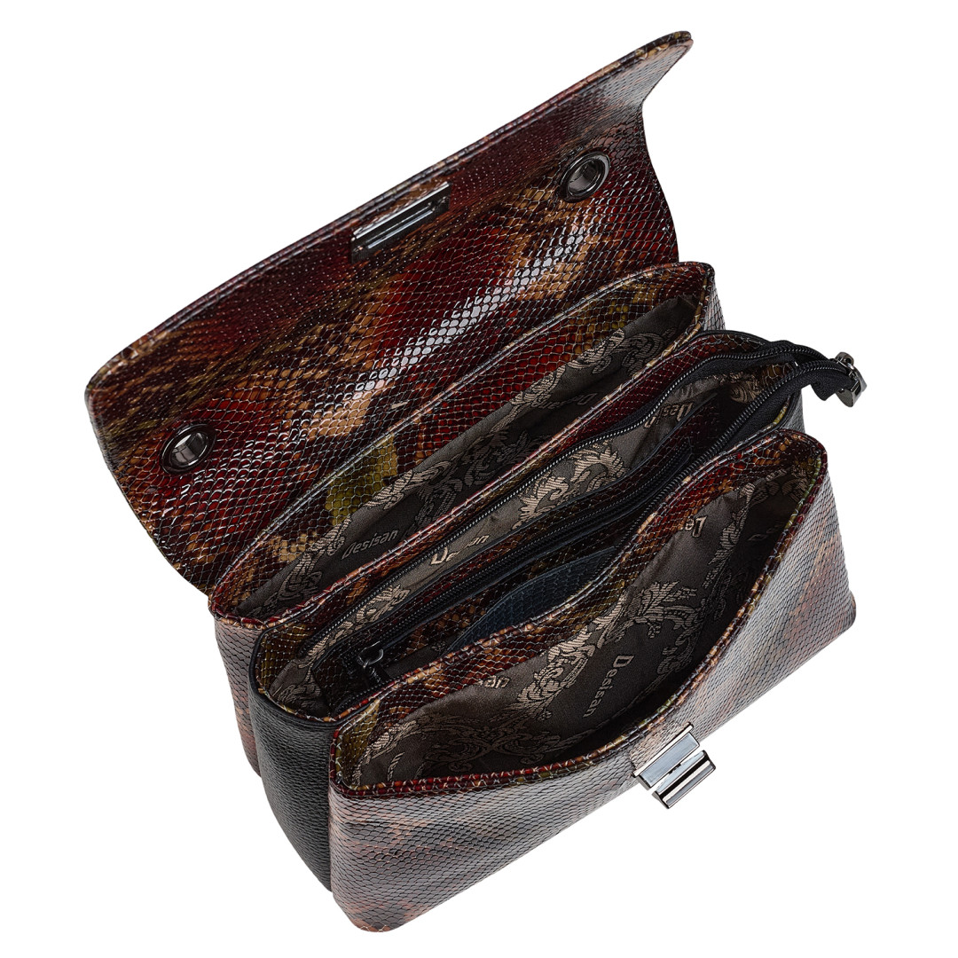 Женская сумочка Desisan выполнена из натуральной кожи с принтом под рептилию.