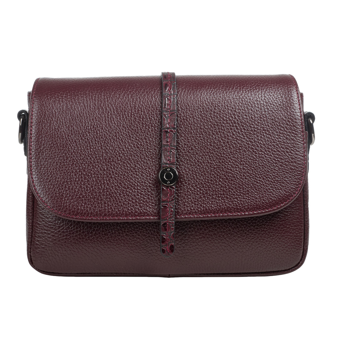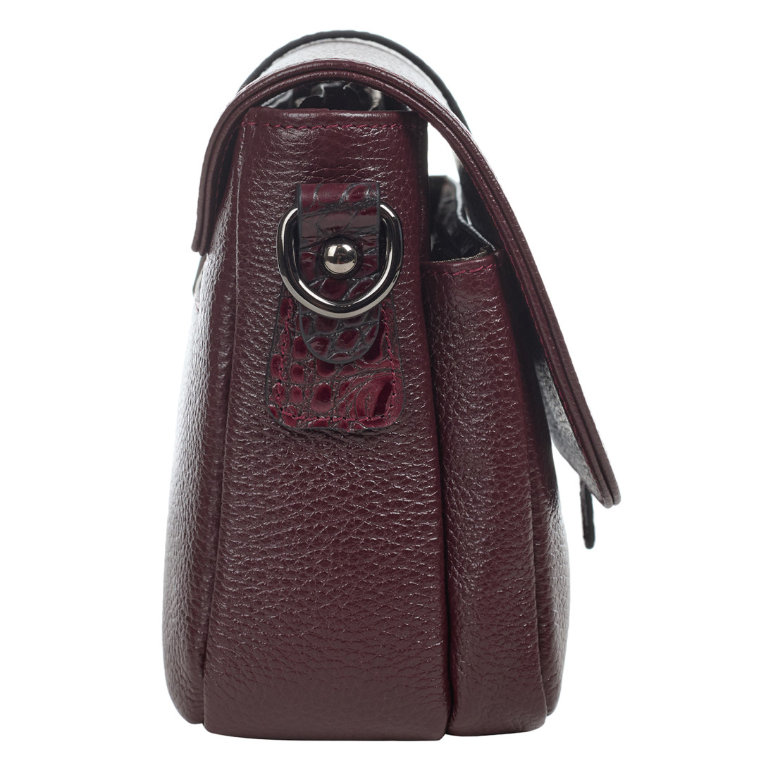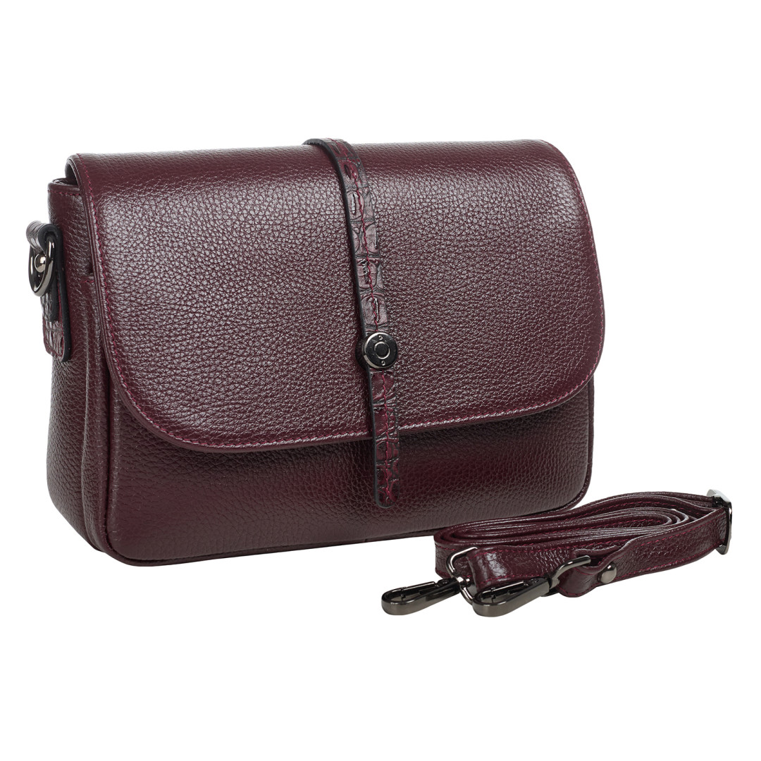 Женская сумочка Desisan выполнена из натуральной кожи (флотар) в бордовом цвете.