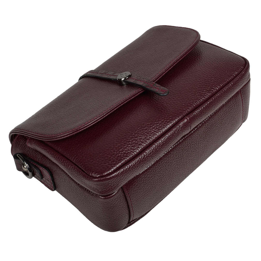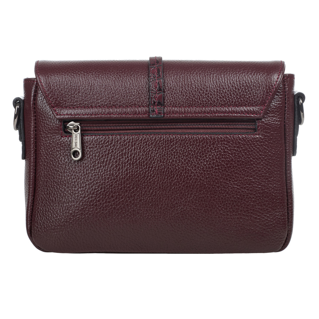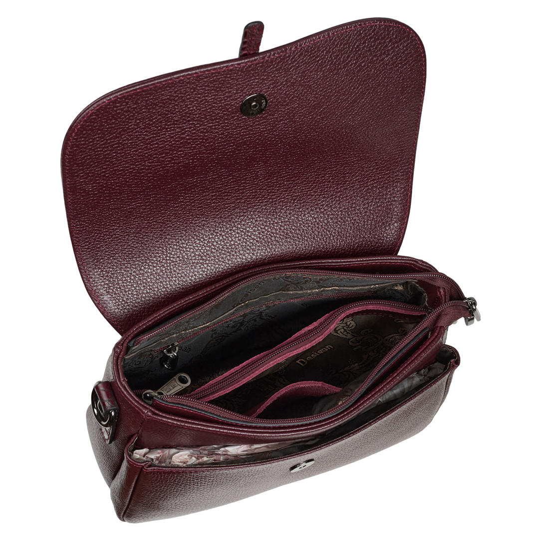 Женская сумочка Desisan выполнена из натуральной кожи (флотар) в бордовом цвете.