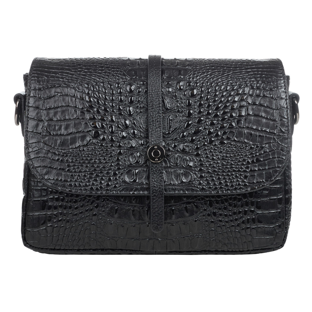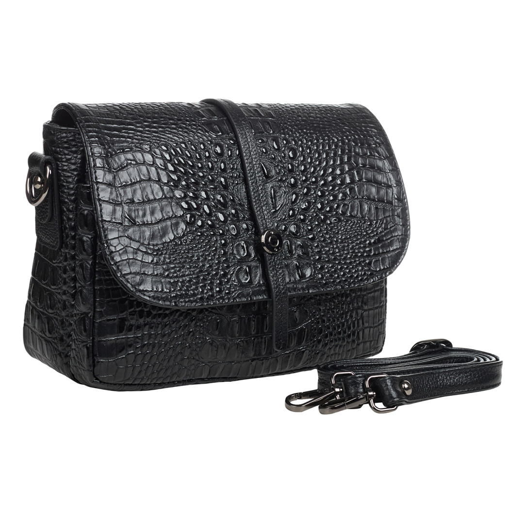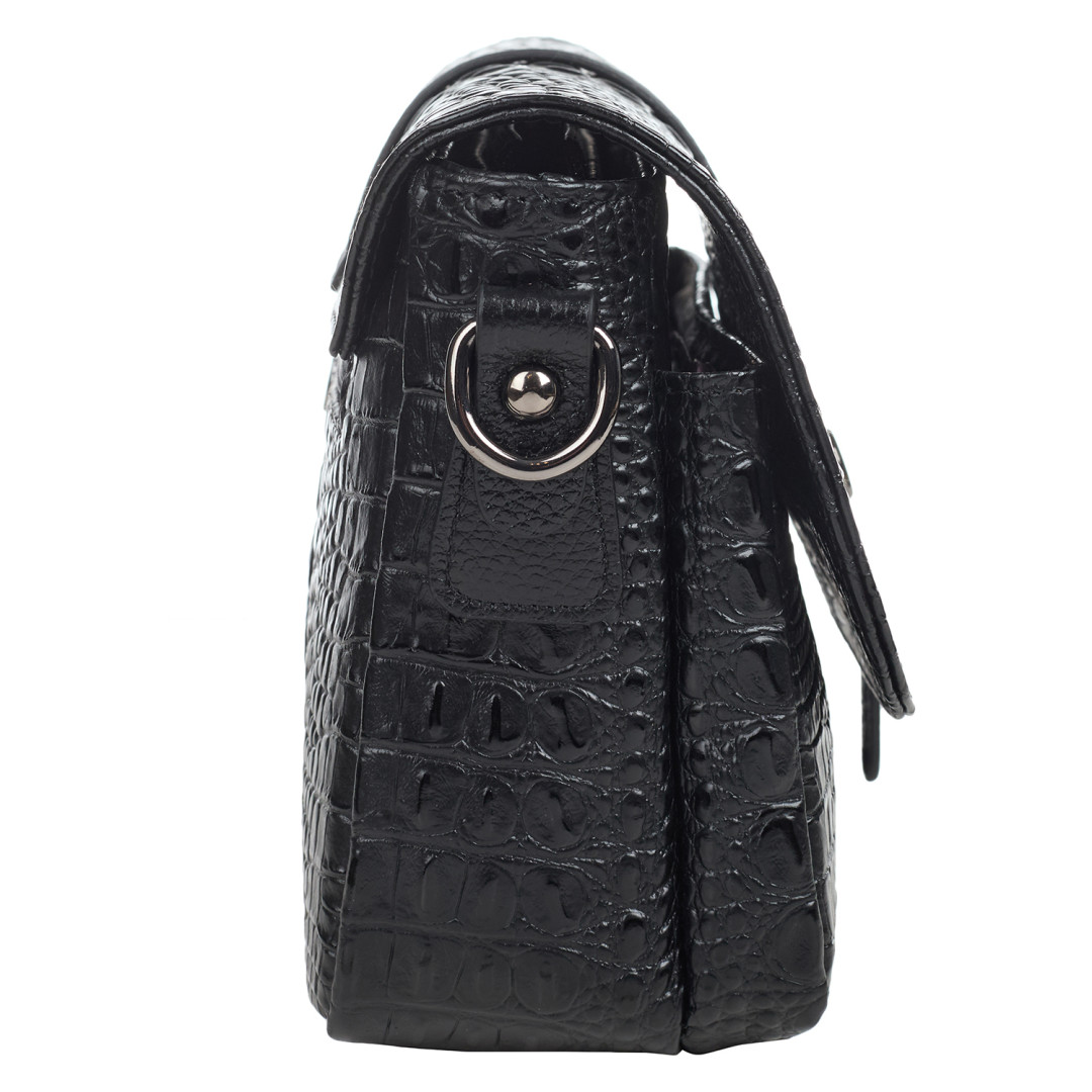 Женская сумочка Desisan выполнена из натуральной кожи под крокодила в черном цвете.