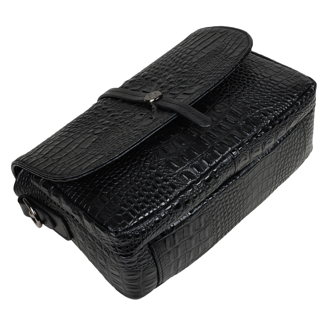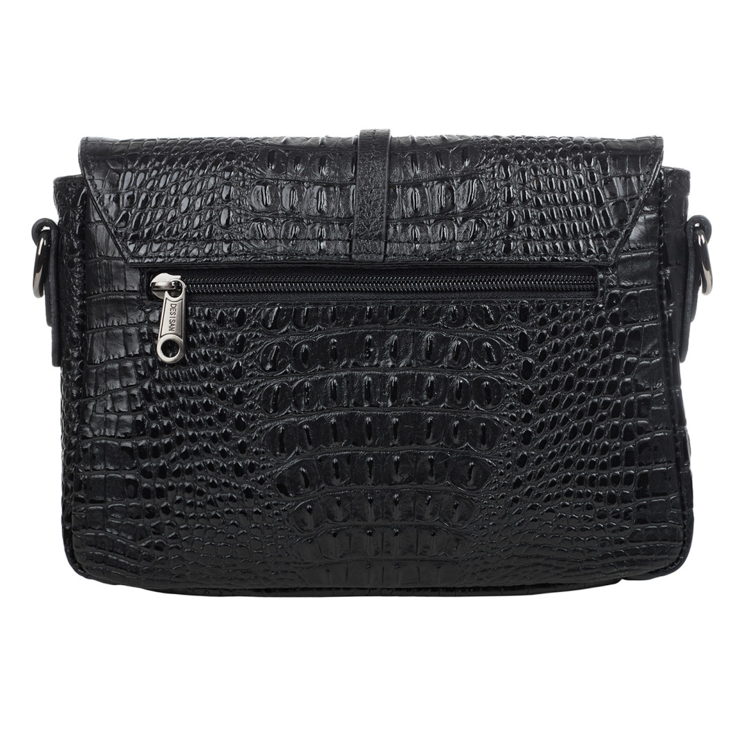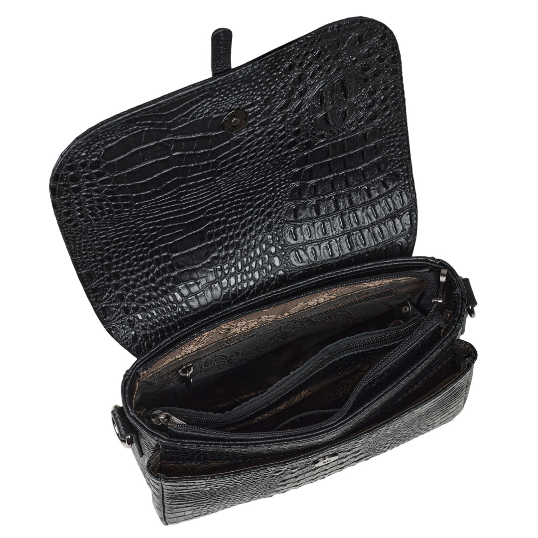 Женская сумочка Desisan выполнена из натуральной кожи под крокодила в черном цвете.