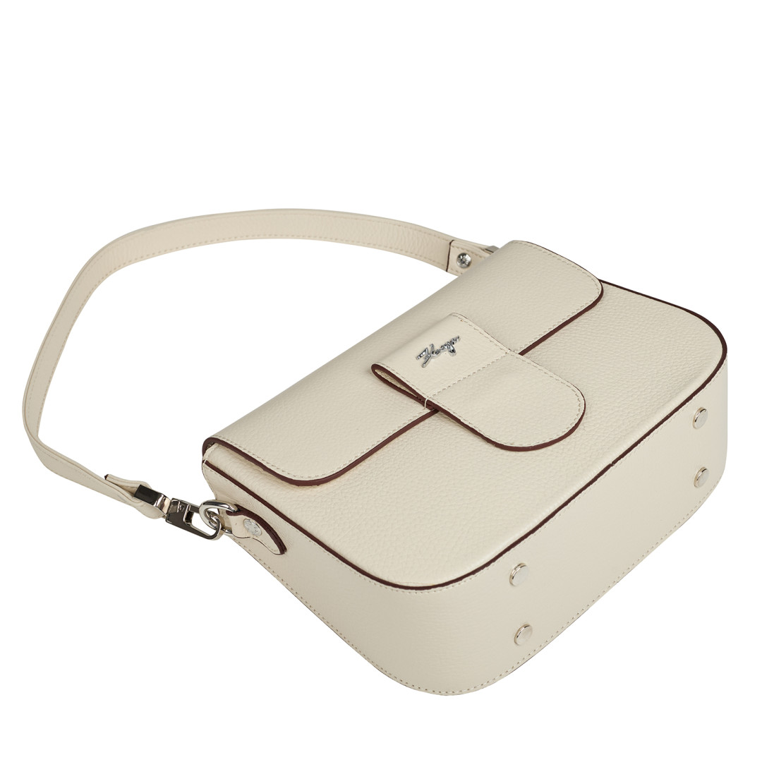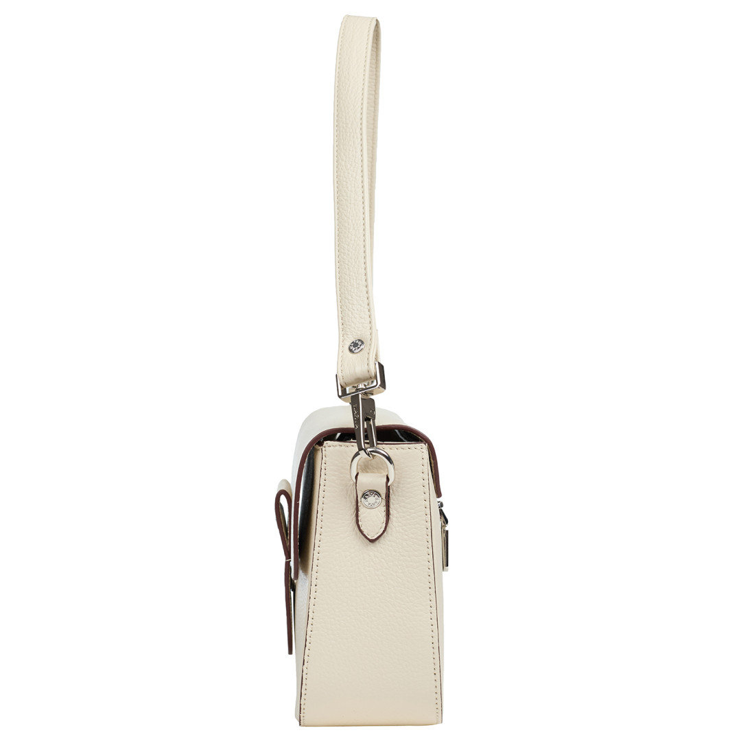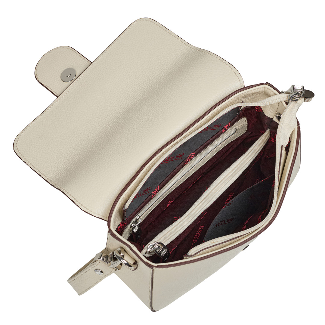 Женская сумочка KARYA выполнена из натуральной кожи (флотар) в светло-бежевом цвете.