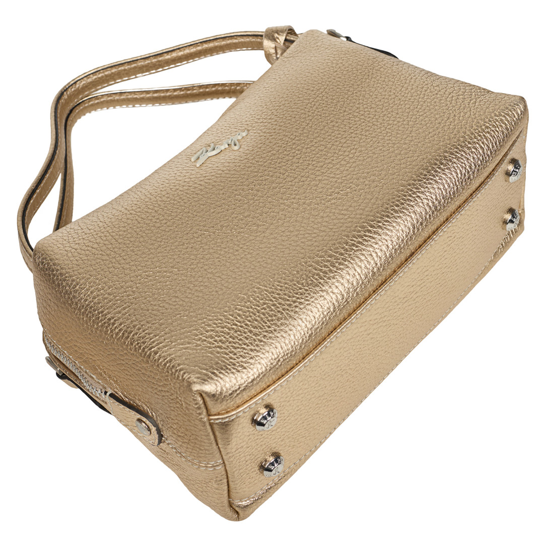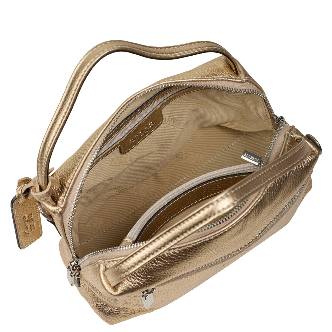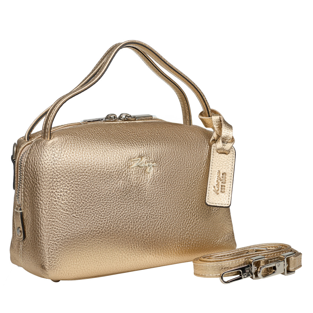 Женская сумочка KARYA выполнена из натуральной кожи (флотар) в золотистом цвете.