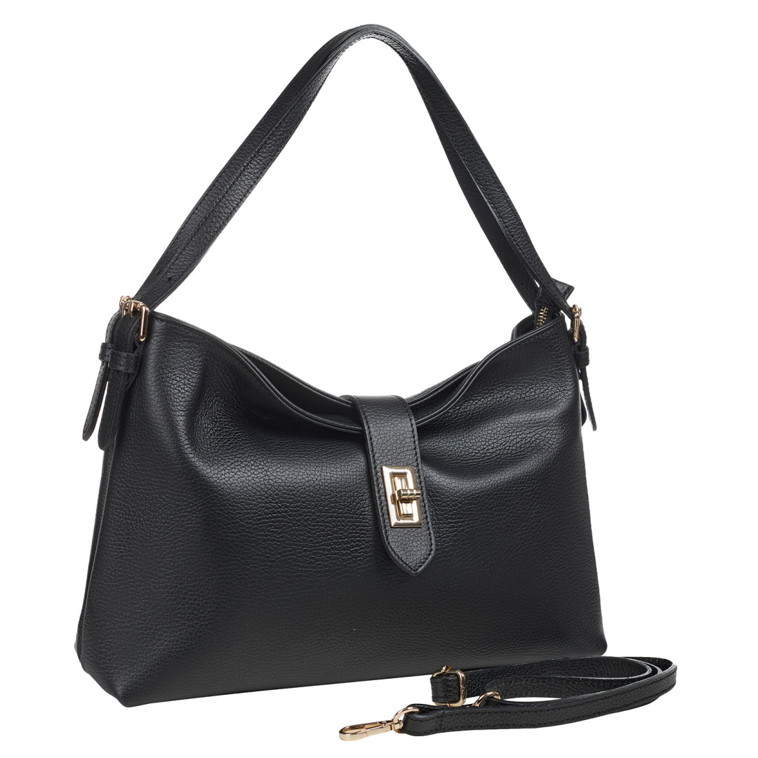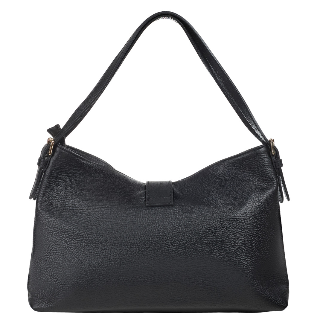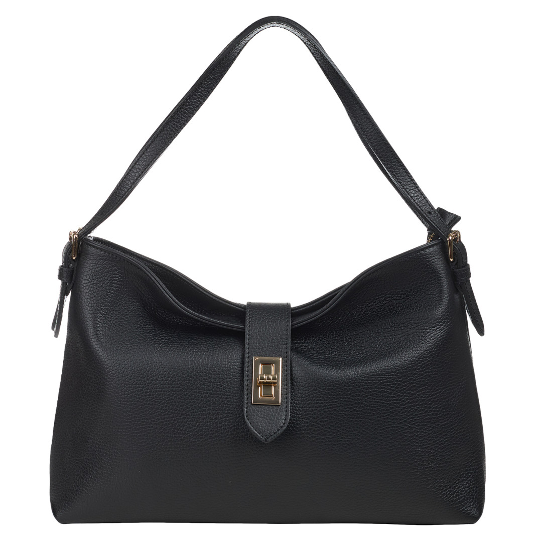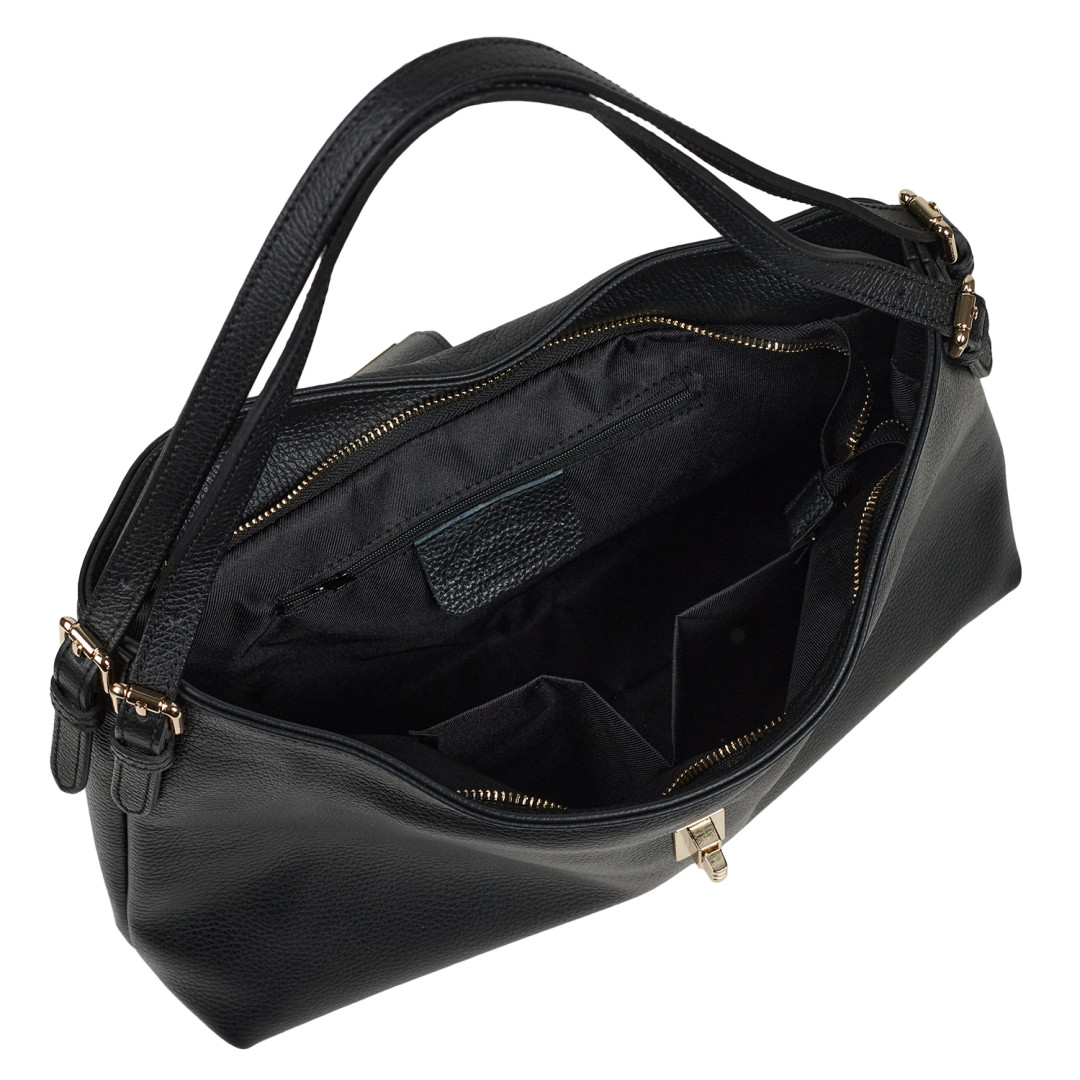 Женская сумка Virginia Conti выполнена из натуральной кожи (флотар) в черном цвете.
